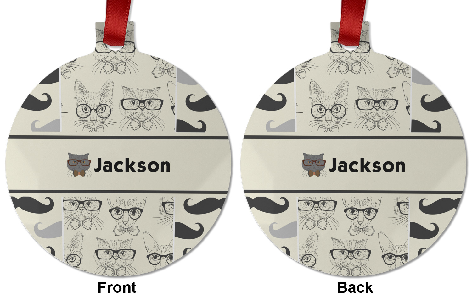 We chose the graphic & text on ribbon style for the main design; a chose a full color graphic of one of the cats.