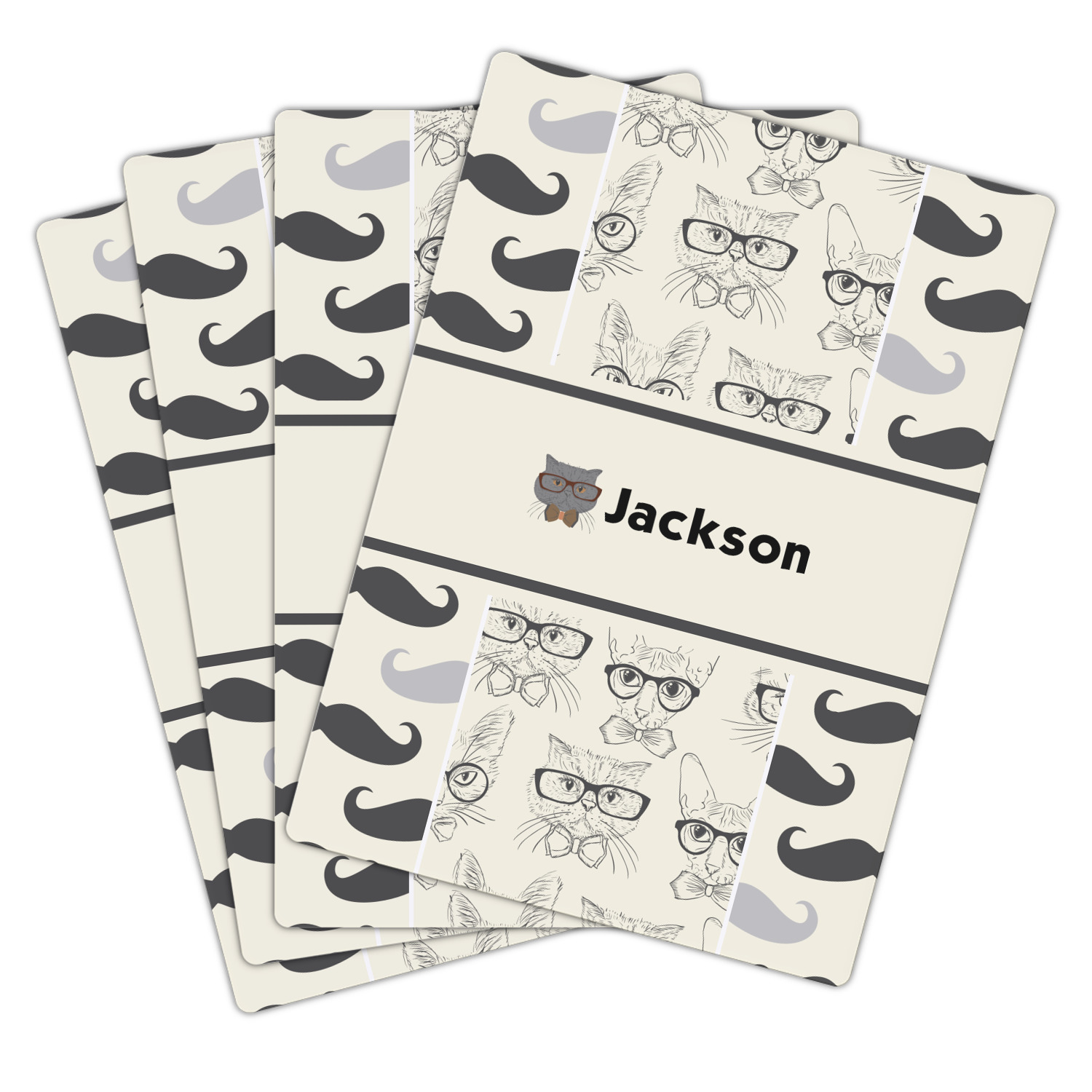 The customization / personalization is printed on the back side. The playing cards have a low gloss coating on both sides. The cards are packaged in a clear plastic box.