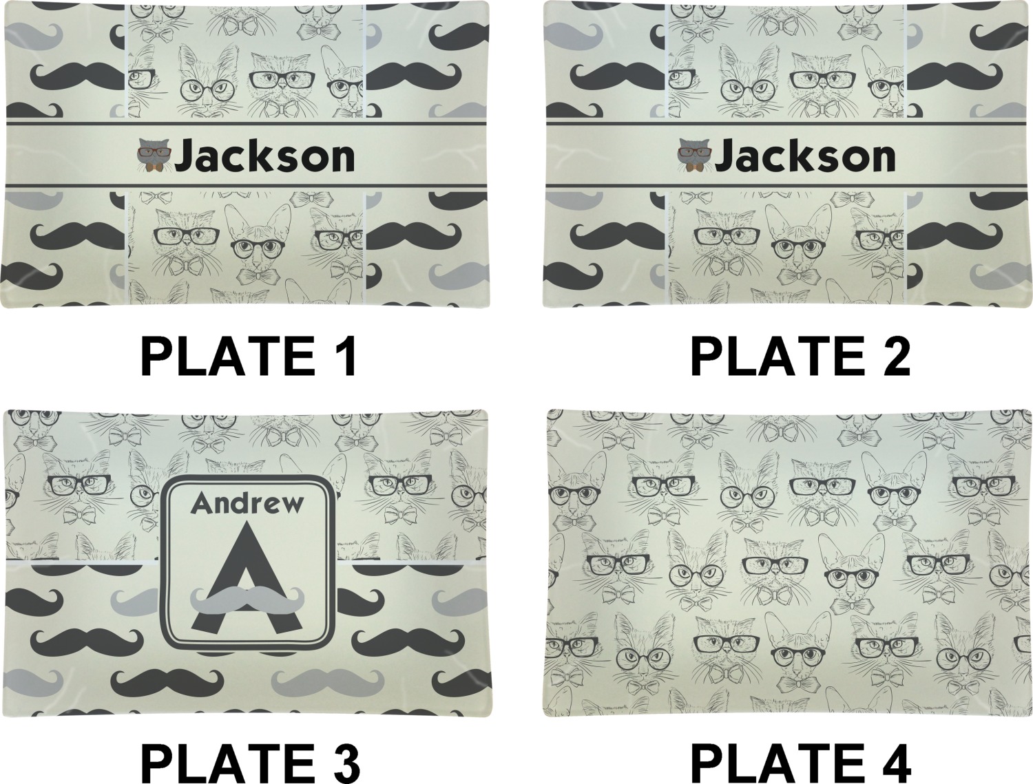 Mustache & Lip Designs for Glass Rectangular Lunch / Dinner Plates - Set of 4