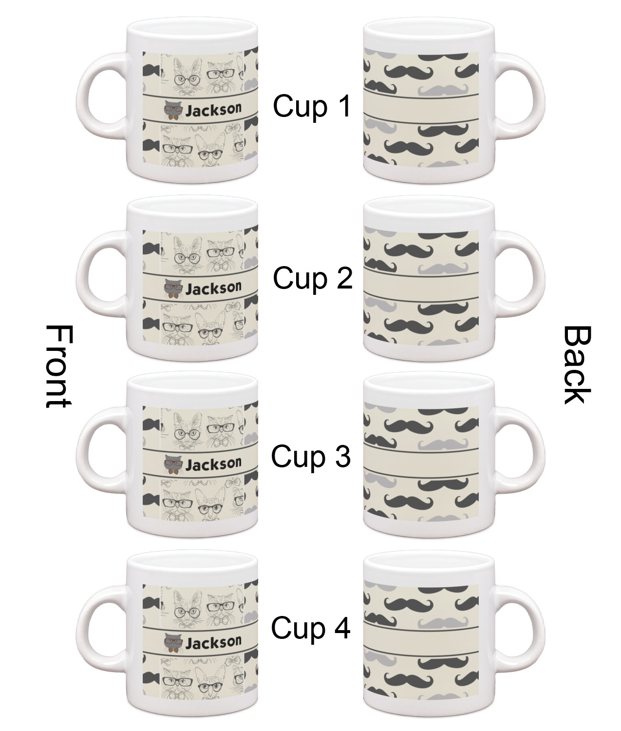 Mustache & Lip Designs for Single Shot Espresso Cups - Set of 4
