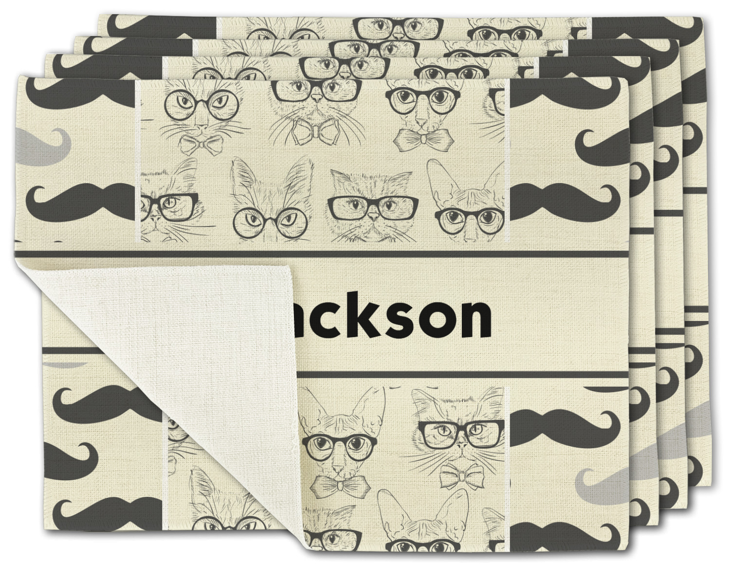 Mustache & Lip Designs for Single-Sided Linen Placemats - Set of 4