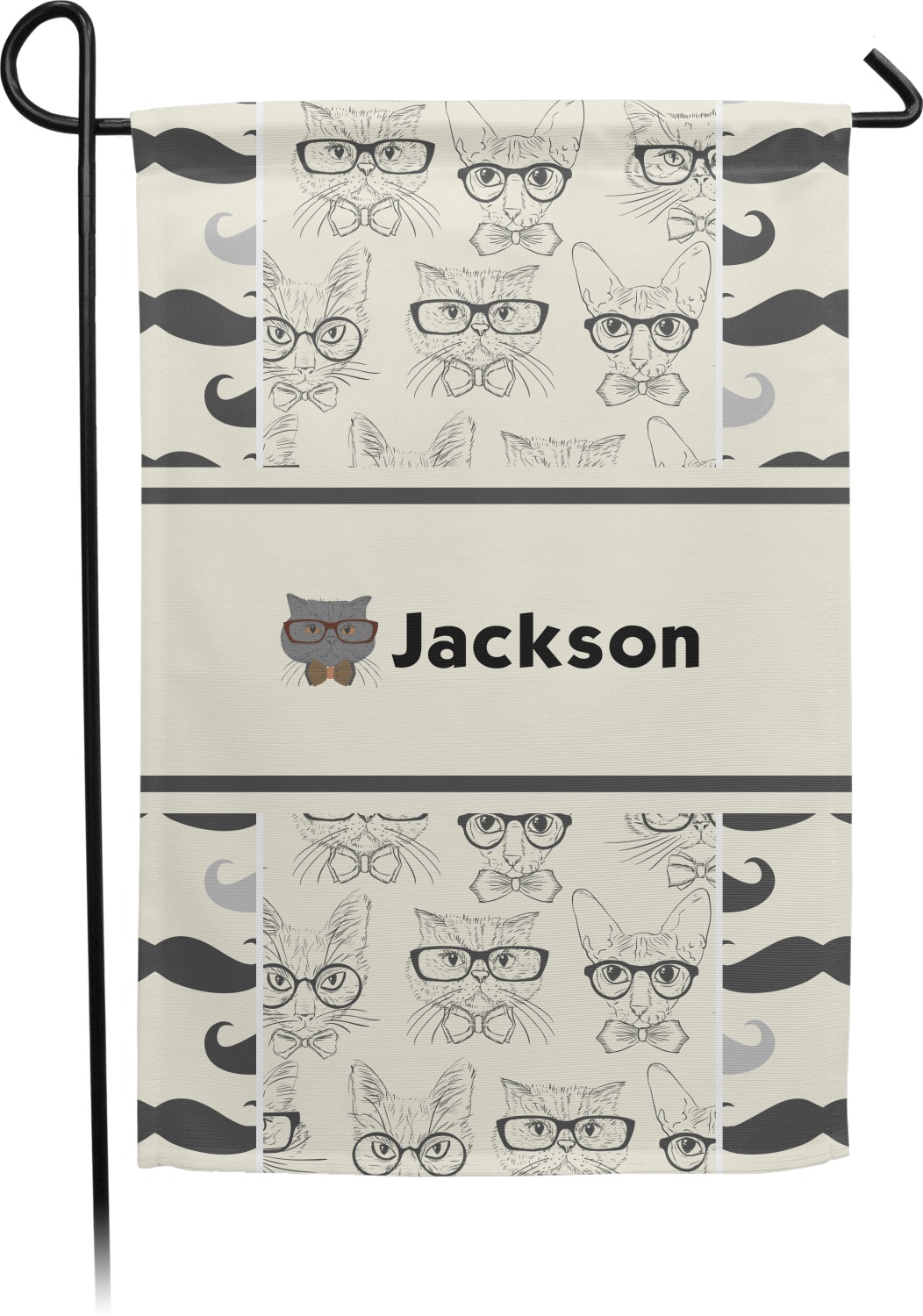 These custom garden flags are made of a durable, double-ply, polyester weave, allowing them to withstand the elements year round. The small flags measure at approximately 12 by 18 inches. The large flags measure out to 28 by 37 inches. You can order these decorative flags with your customization printed on the front only, or the front and back.