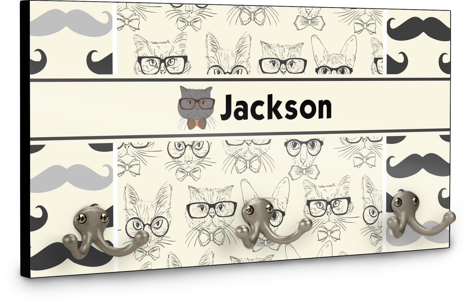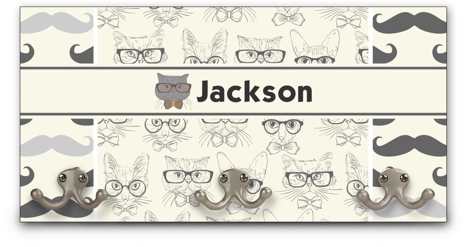 This coat rack is the perfect way to add some personality to your wall or entryway. The board is made of a strong maple that is approximately 16" x 8". The three 2-prong hooks are a sturdy metal that have three screws attaching them to the board. Your design is printed right onto the front of the board while the back and sides are a simple black.