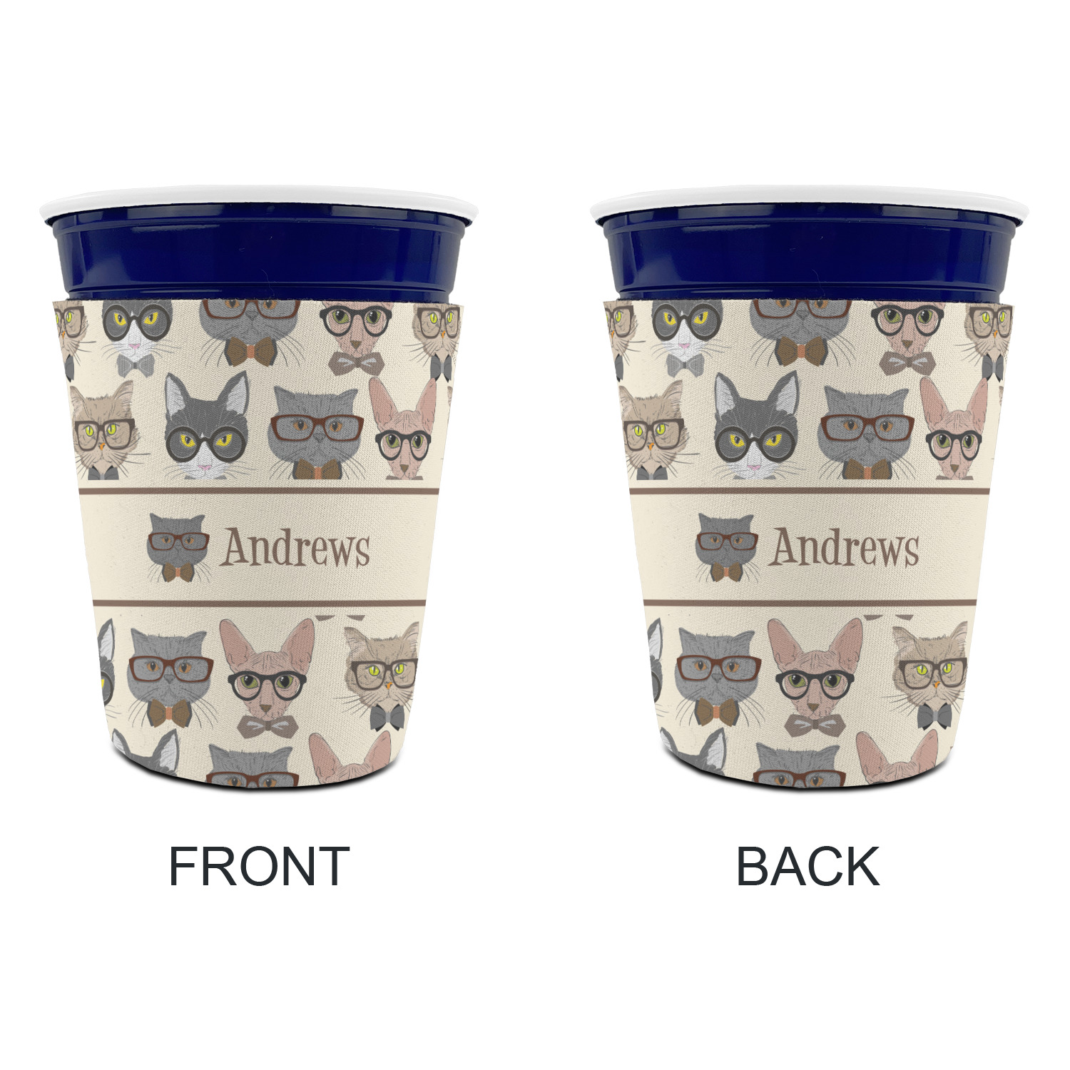 Made from neoprene with a polyester outer fabric and sewn seams, these premium quality party cup sleeves are very durable and will hold up to heavy use. They are available in 2 styles - with a bottom or just a sleeve to go around the outside of the tapered cup. The sleeve covers are about 4" tall and cover about 90% of the classic 16 oz. Solo cup.