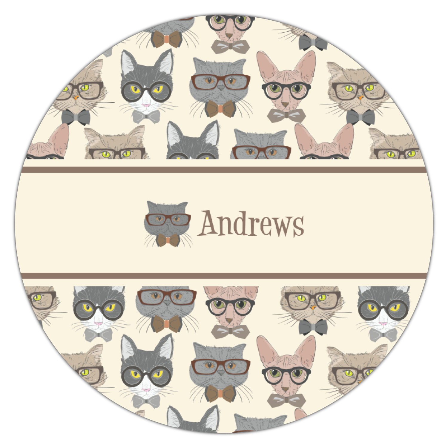 We chose a classic ribbon in vintage brown along with an image of one of the cats (all 4 cats are available) and name for personalizations.