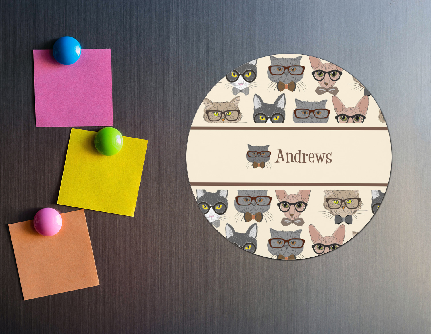 Get rid of all those unslightly magnets you've gathered from food delivery places and jazz up your fridge with our personalized round magnets. If you're looking for a small gift with a big bang you've found them!! With the designs and colors from our collections you are sure to find one that fits anyone's personality.