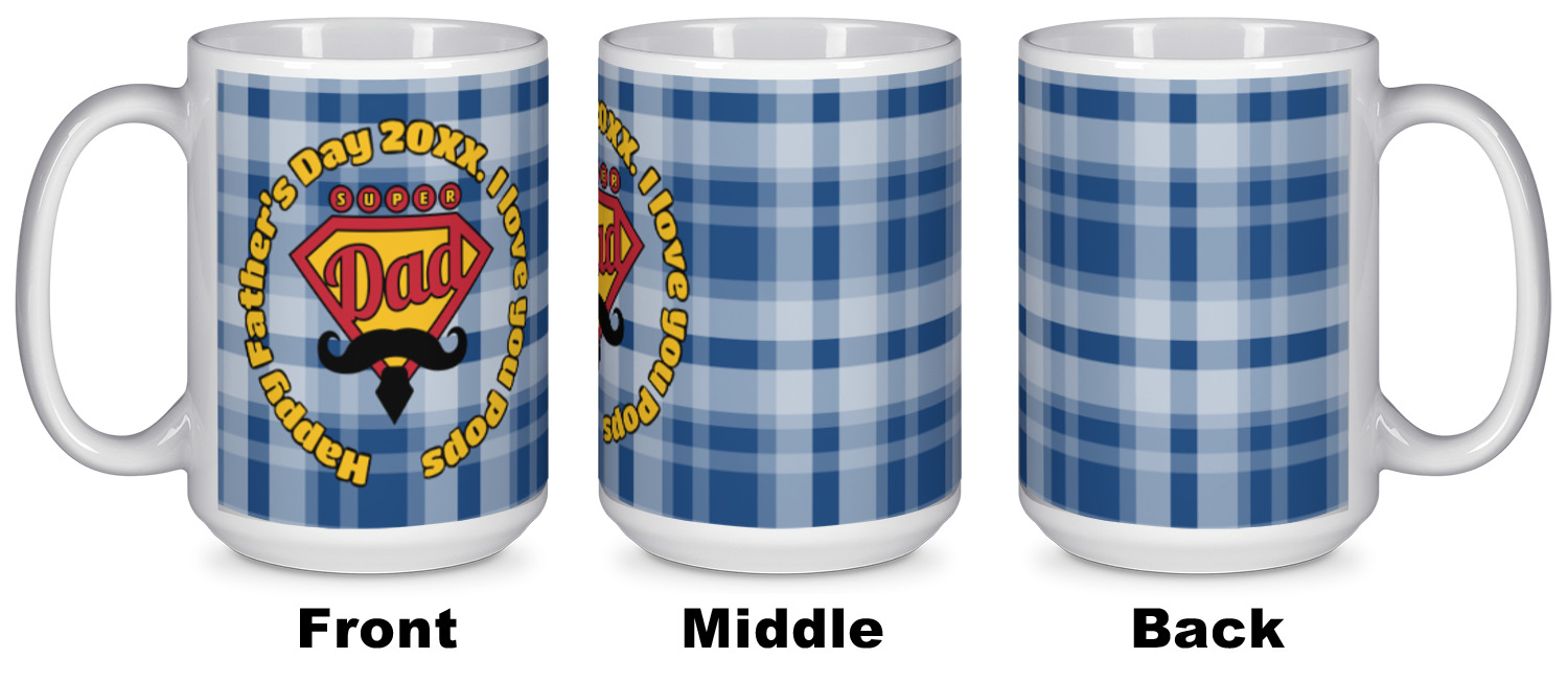 This design is perfect for the Hipster Dad. We chose a blue plaid background with a graphic & text personalization style. We chose the super dad graphic with a mustache & tie in traditional red and yellow. We added "Happy Father's Day 20XX. I Love You Pops" for our text. You can create the perfect father's day gift with this design!