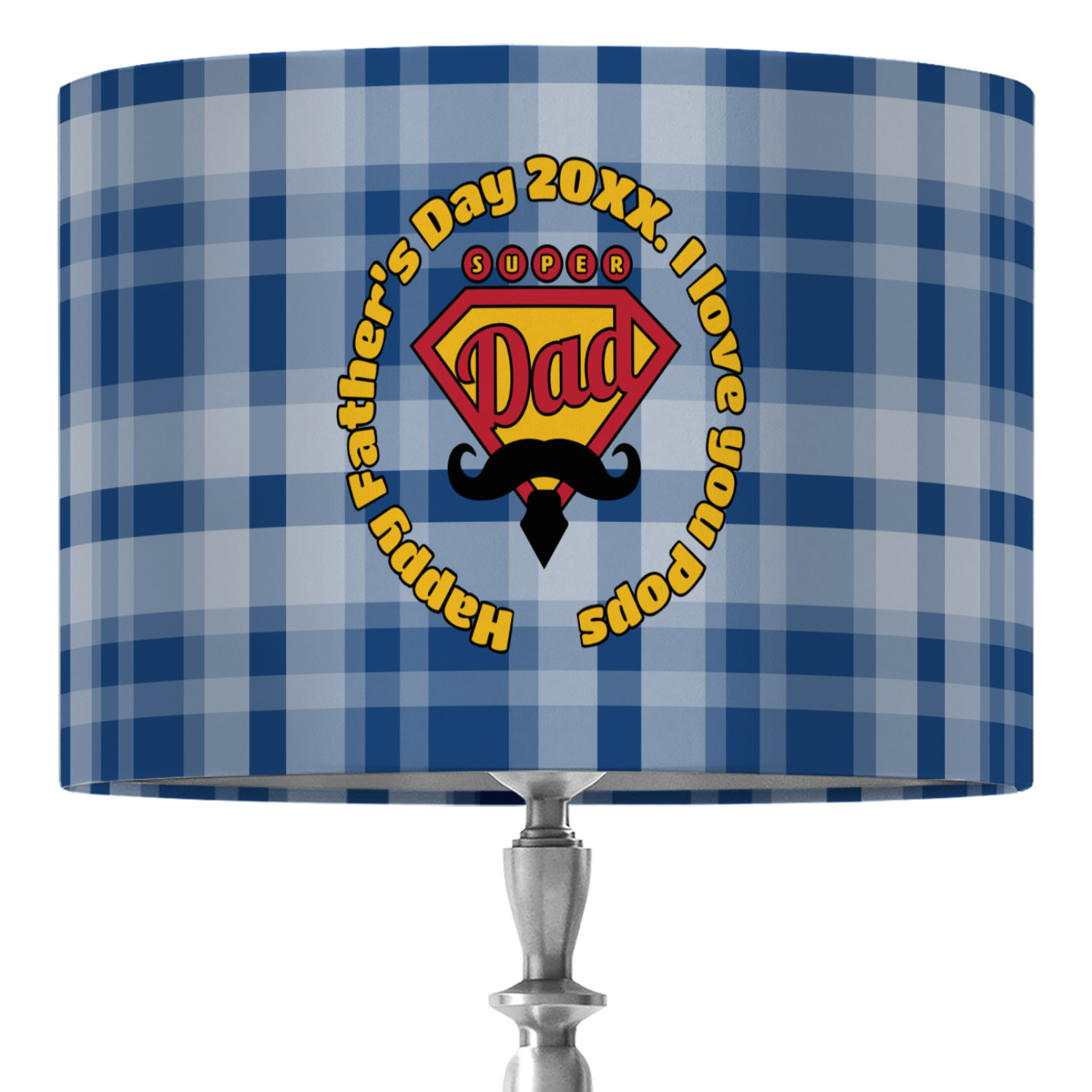 This design is perfect for the Hipster Dad. We chose a blue plaid background with a graphic & text personalization style. We chose the super dad graphic with a mustache & tie in traditional red and yellow. We added "Happy Father's Day 20XX. I Love You Pops" for our text. You can create the perfect father's day gift with this design!