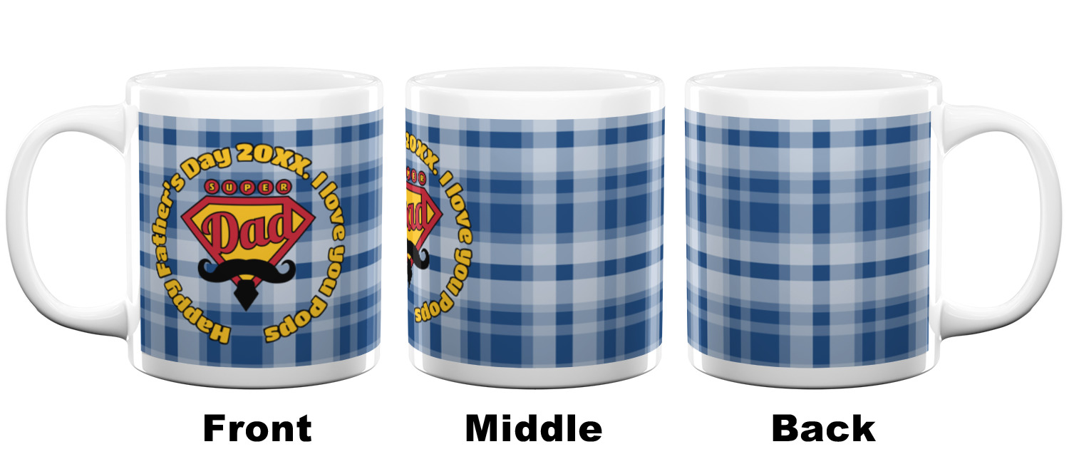 This design is perfect for the Hipster Dad. We chose a blue plaid background with a graphic & text personalization style. We chose the super dad graphic with a mustache & tie in traditional red and yellow. We added "Happy Father's Day 20XX. I Love You Pops" for our text. You can create the perfect father's day gift with this design!