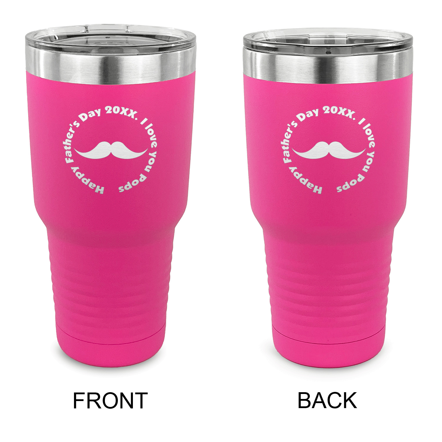 With the 5 colors - Black, Navy, Red, Pink and Coral, you are sure to find a cup to fit your personality. You can chose to engrave on the front or the front and back of the cup. Use our design studio to design your own cup and we laser engrave it for you.