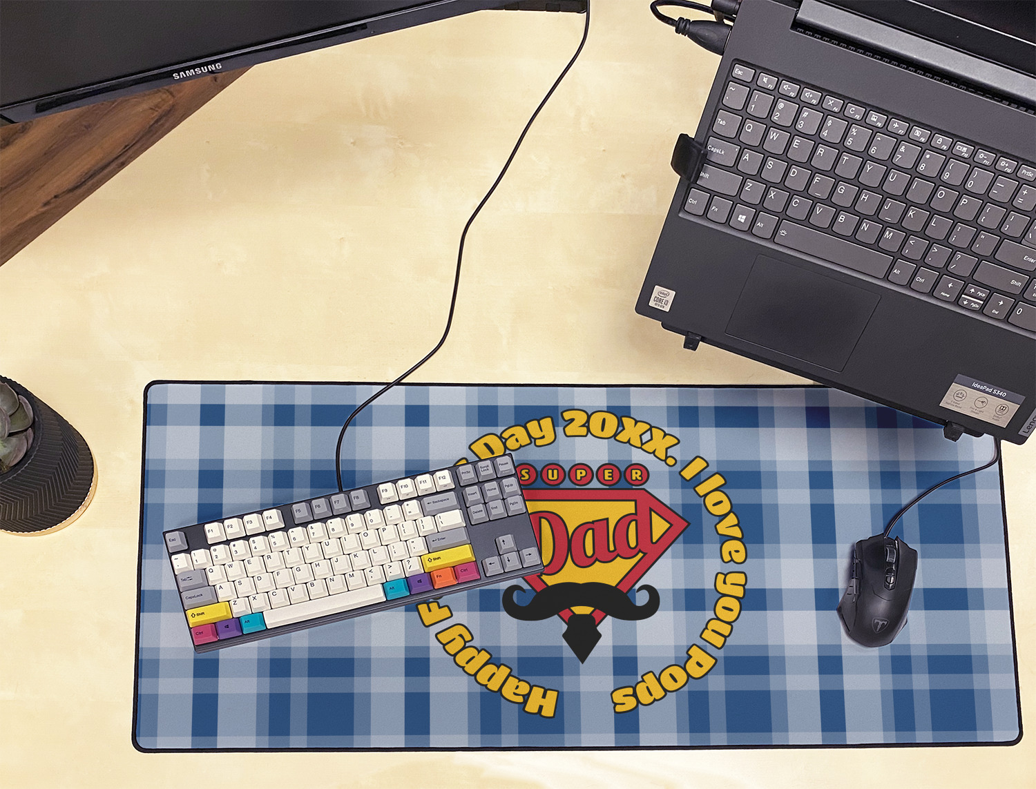 This design is perfect for the Hipster Dad. We chose a blue plaid background with a graphic & text personalization style. We chose the super dad graphic with a mustache & tie in traditional red and yellow. We added "Happy Father's Day 20XX. I Love You Pops" for our text. You can create the perfect father's day gift with this design!