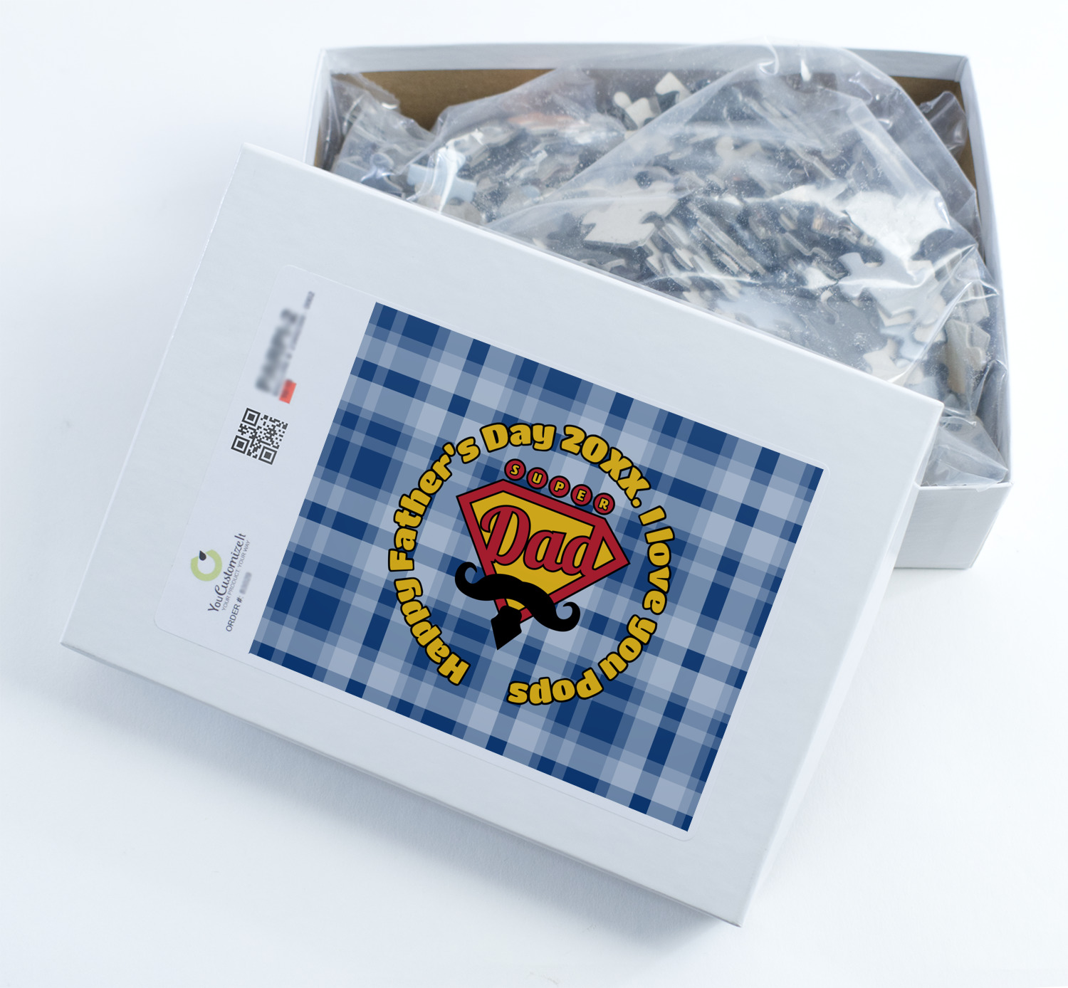 You can also upload your logo or art that you or your kids drew. To create more challenging jigsaw puzzles, you can create a pattern from with your logo or artwork. You can also add other elements such as text or personalization.