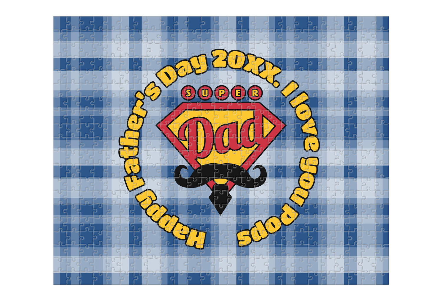 This design is perfect for the Hipster Dad. We chose a blue plaid background with a graphic & text personalization style. We chose the super dad graphic with a mustache & tie in traditional red and yellow. We added "Happy Father's Day 20XX. I Love You Pops" for our text. You can create the perfect father's day gift with this design!
