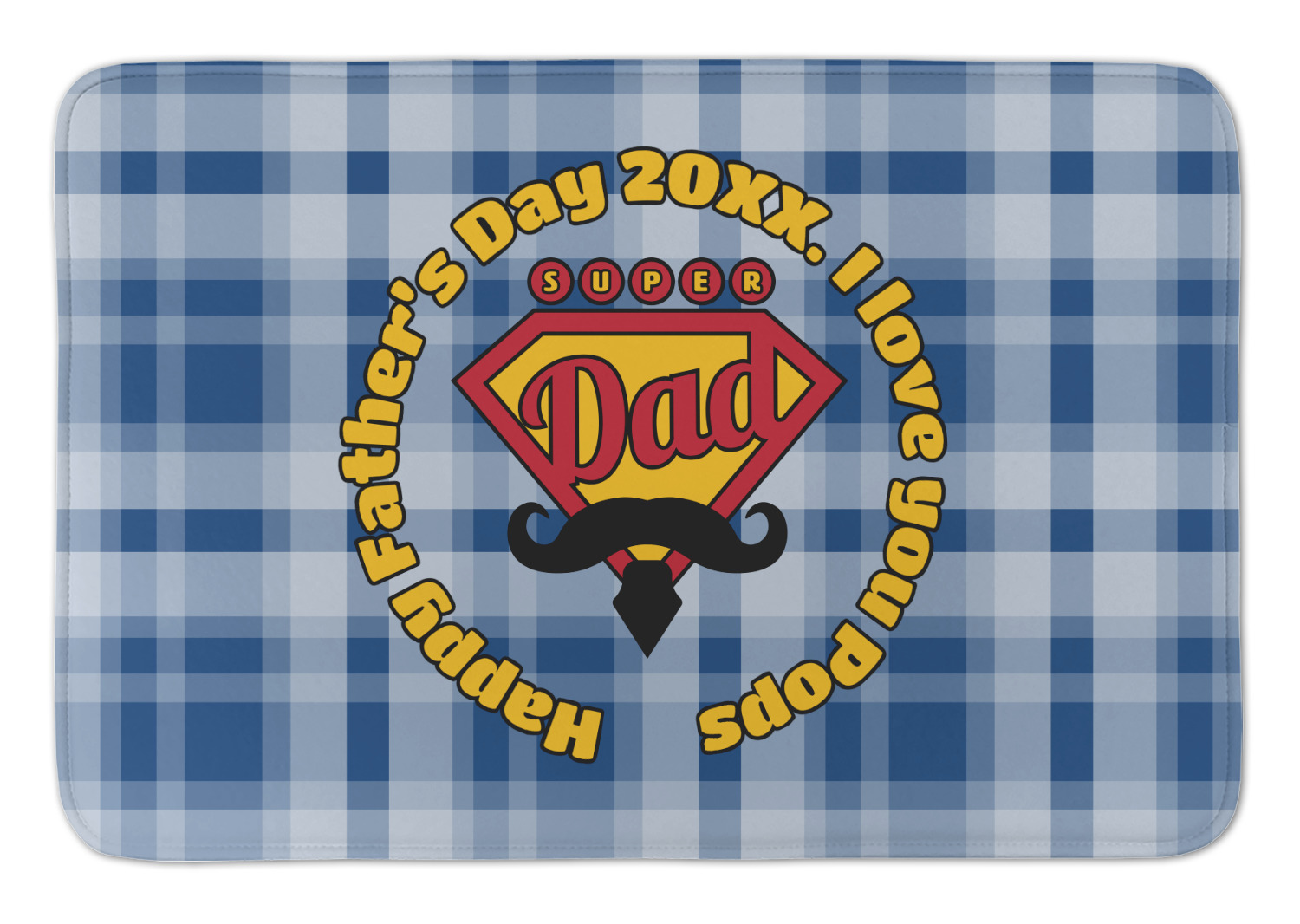 This design is perfect for the Hipster Dad. We chose a blue plaid background with a graphic & text personalization style. We chose the super dad graphic with a mustache & tie in traditional red and yellow. We added "Happy Father's Day 20XX. I Love You Pops" for our text. You can create the perfect father's day gift with this design!