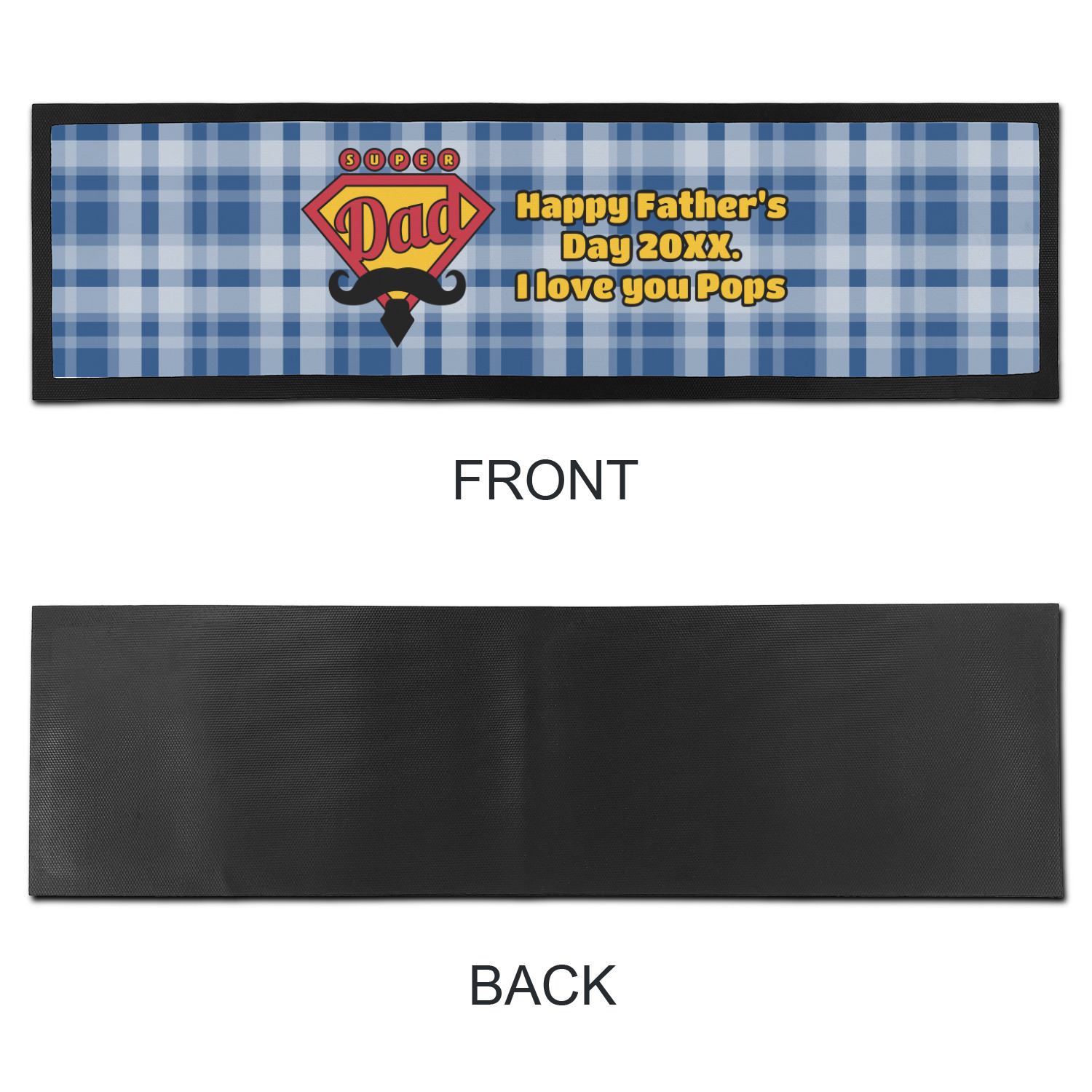 This design is perfect for the Hipster Dad. We chose a blue plaid background with a graphic & text personalization style. We chose the super dad graphic with a mustache & tie in traditional red and yellow. We added "Happy Father's Day 20XX. I Love You Pops" for our text. You can create the perfect father's day gift with this design!