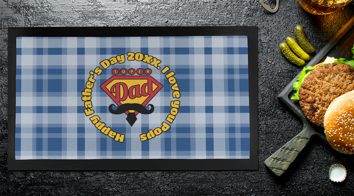 This design is perfect for the Hipster Dad. We chose a blue plaid background with a graphic & text personalization style. We chose the super dad graphic with a mustache & tie in traditional red and yellow. We added "Happy Father's Day 20XX. I Love You Pops" for our text. You can create the perfect father's day gift with this design!