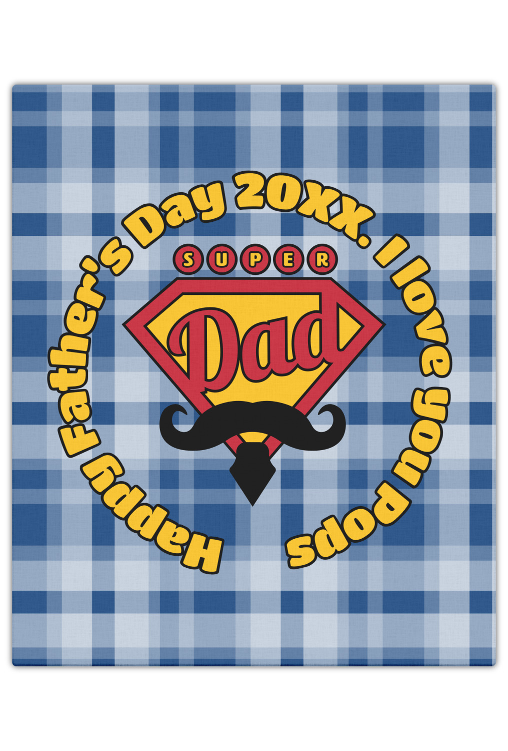 This design is perfect for the Hipster Dad. We chose a blue plaid background with a graphic & text personalization style. We chose the super dad graphic with a mustache & tie in traditional red and yellow. We added "Happy Father's Day 20XX. I Love You Pops" for our text. You can create the perfect father's day gift with this design!