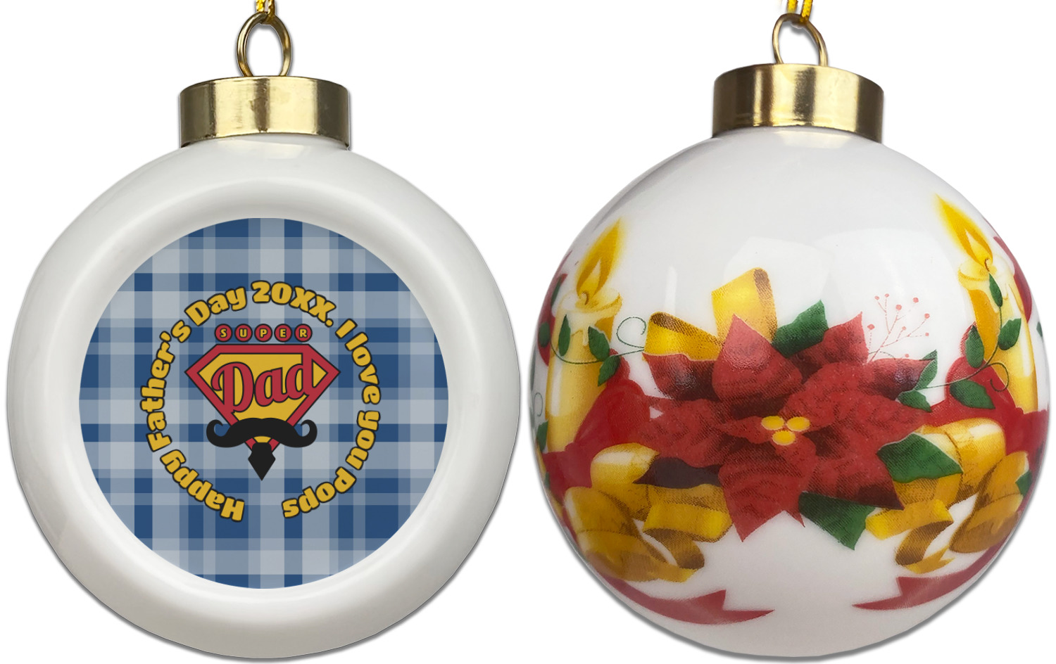 Our Christmas ornaments are a unique ceramic ball shape with a twist as it has a flat face to display your custom design! Select from one of our two design types - Christmas Tree or Poinsettia Garland - to adorn the curved back of your personal design. Each ornament measures 3H x 2.5W x 2D accompanied with a gold string accent for finishing touches to hang on your beautiful Christmas tree!