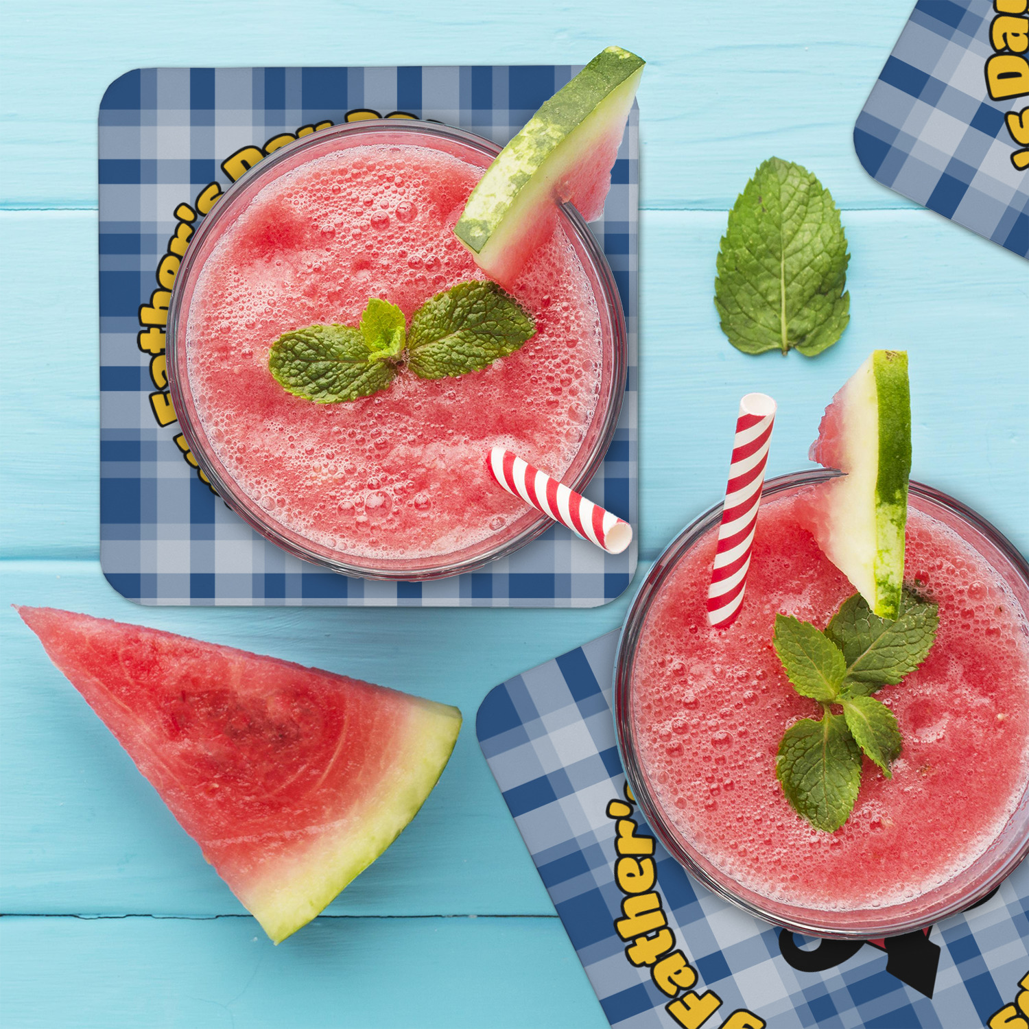 Your custom coasters have a smooth, laminated top and a cork bottom to prevent any unwanted slippage. We print your customized design atop this laminated surface, in bright and vibrant colors.