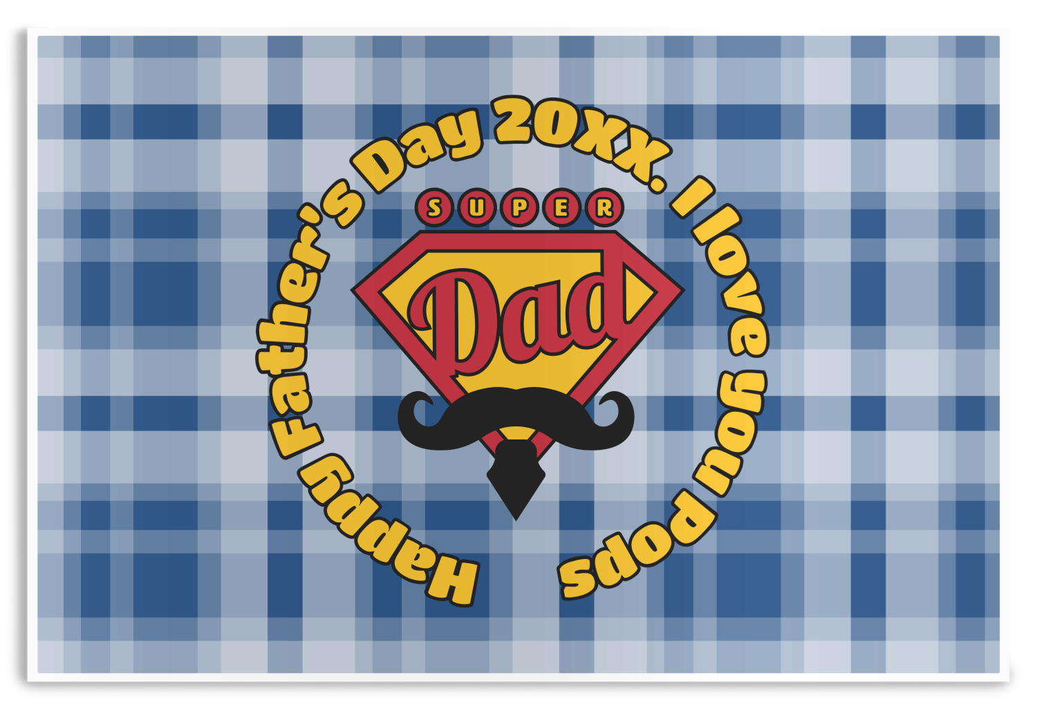 This design is perfect for the Hipster Dad. We chose a blue plaid background with a graphic & text personalization style. We chose the super dad graphic with a mustache & tie in traditional red and yellow. We added "Happy Father's Day 20XX. I Love You Pops" for our text. You can create the perfect father's day gift with this design!