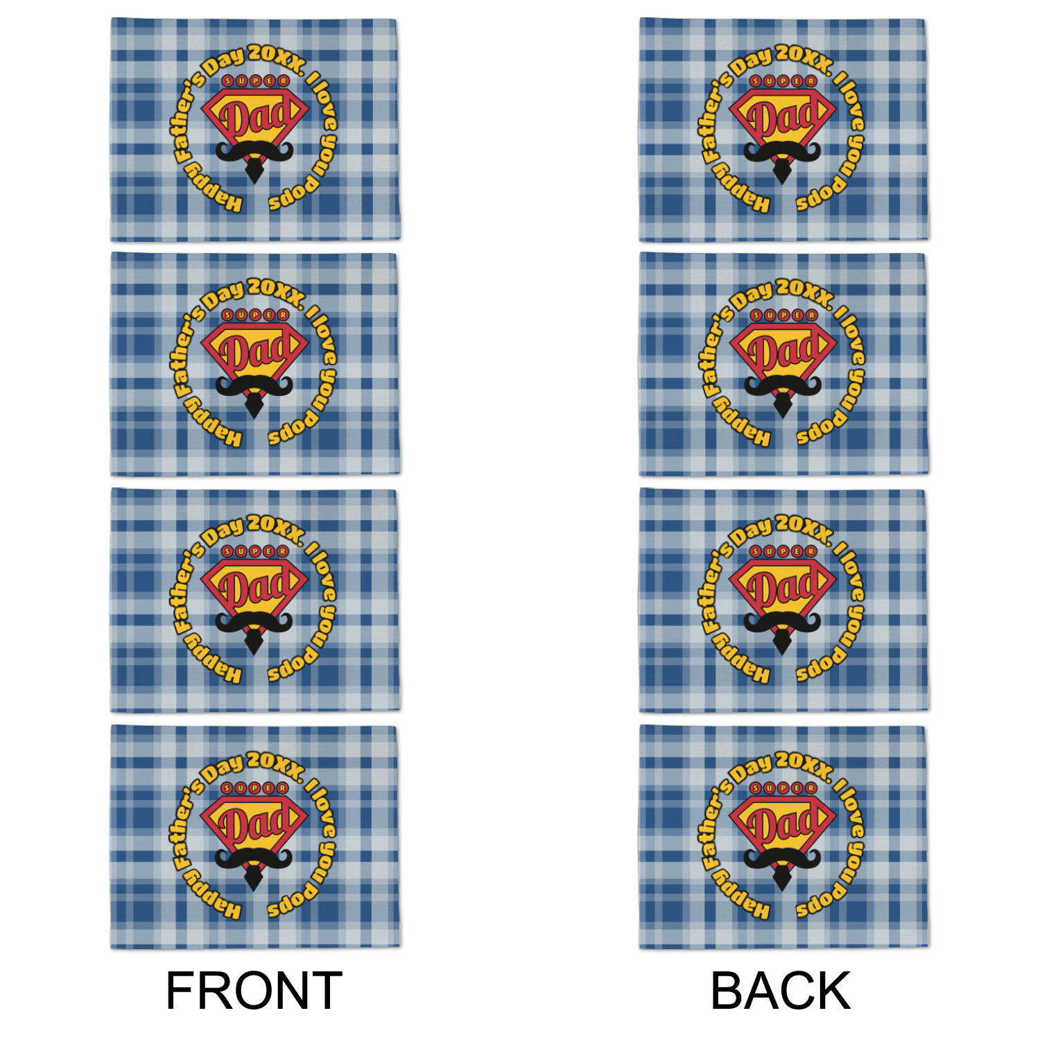 This design is perfect for the Hipster Dad. We chose a blue plaid background with a graphic & text personalization style. We chose the super dad graphic with a mustache & tie in traditional red and yellow. We added "Happy Father's Day 20XX. I Love You Pops" for our text. You can create the perfect father's day gift with this design!