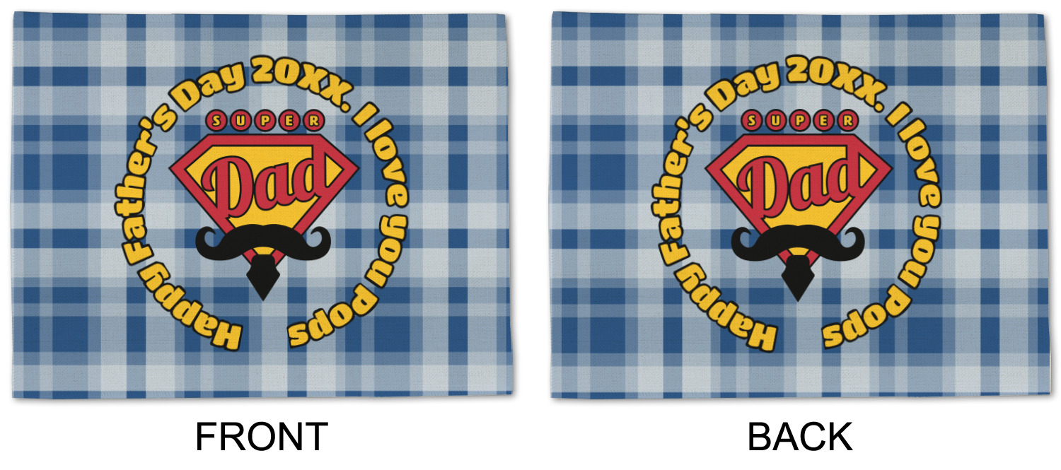 This design is perfect for the Hipster Dad. We chose a blue plaid background with a graphic & text personalization style. We chose the super dad graphic with a mustache & tie in traditional red and yellow. We added "Happy Father's Day 20XX. I Love You Pops" for our text. You can create the perfect father's day gift with this design!