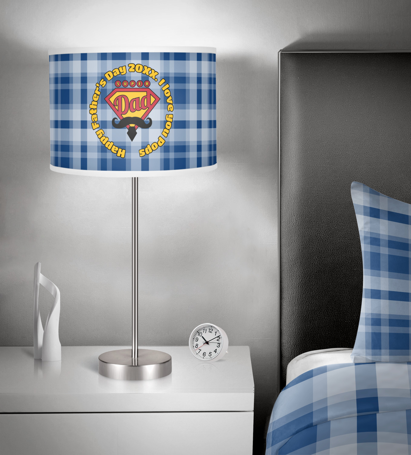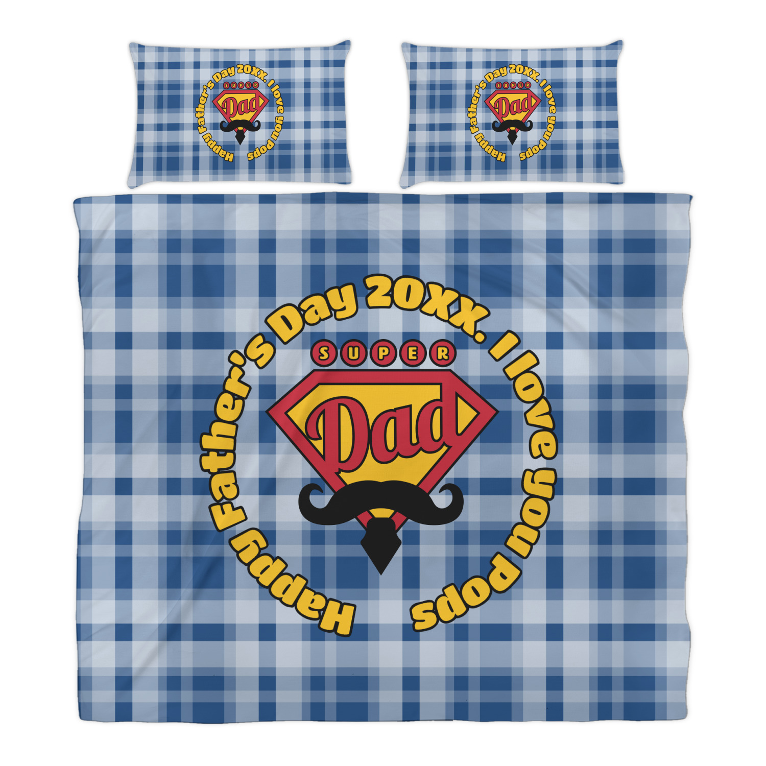 This design is perfect for the Hipster Dad. We chose a blue plaid background with a graphic & text personalization style. We chose the super dad graphic with a mustache & tie in traditional red and yellow. We added "Happy Father's Day 20XX. I Love You Pops" for our text. You can create the perfect father's day gift with this design!