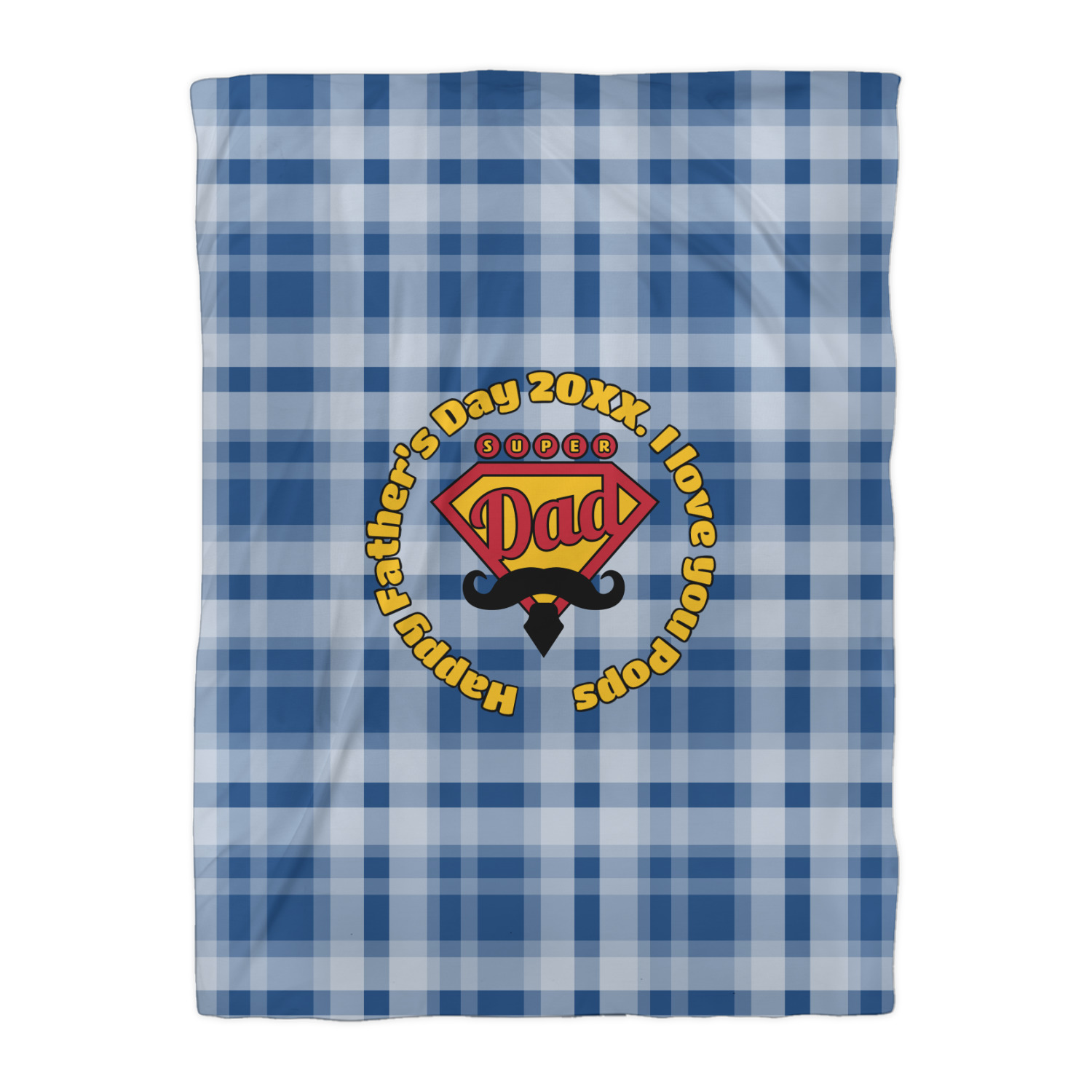 This design is perfect for the Hipster Dad. We chose a blue plaid background with a graphic & text personalization style. We chose the super dad graphic with a mustache & tie in traditional red and yellow. We added "Happy Father's Day 20XX. I Love You Pops" for our text. You can create the perfect father's day gift with this design!