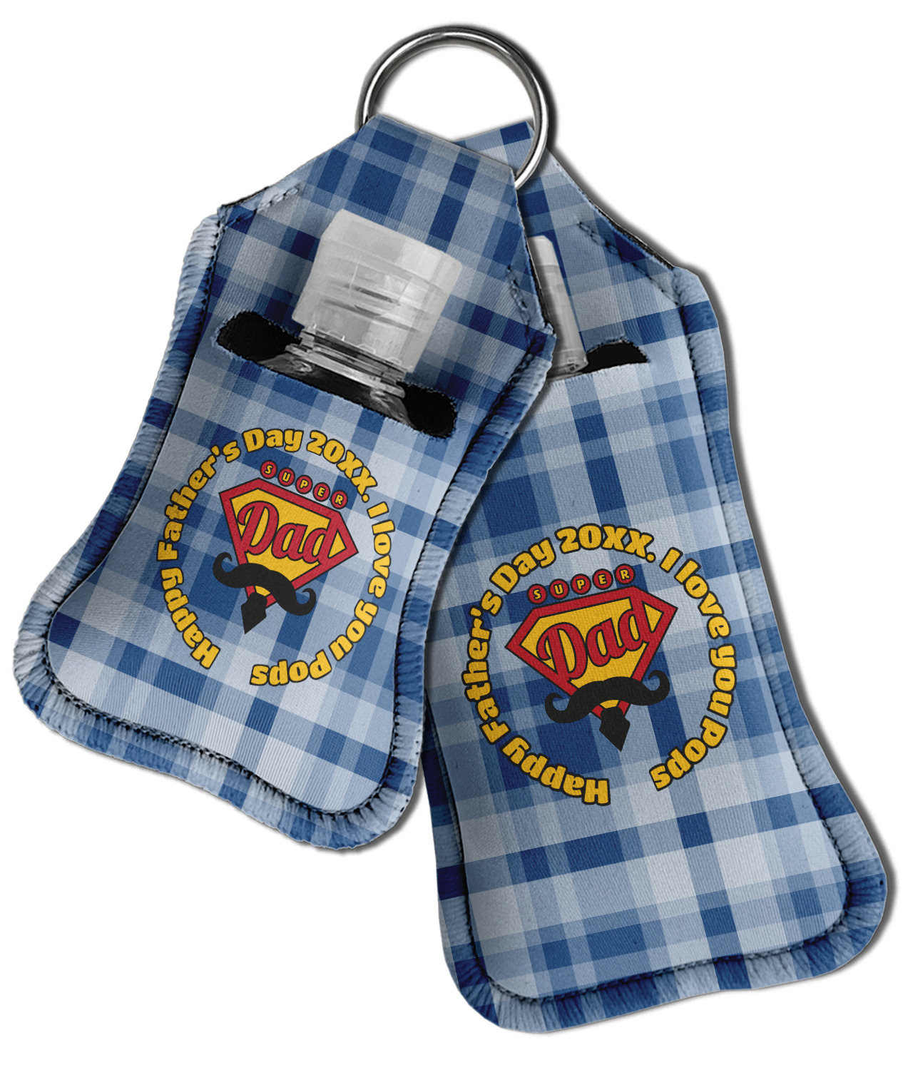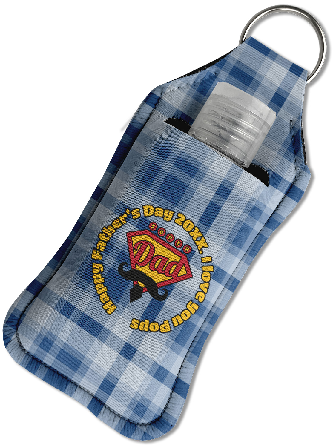 Each hand sanitizer holder comes with its own empty travel-sized, refillable hand sanitizer sure to fit snug in your customized sanitizer case! Our hand sanitizer cases are a durable, yet soft neoprene material sure to last any daily activities or travel agenda. Customize and personalize a hand sanitizer bottle holder with one of our two sizes - small (4.25" x 2.25") or large (5.5" x 2.5"). Each travel sanitizer holder comes with a keyring for attachment on bags, keys, or more!