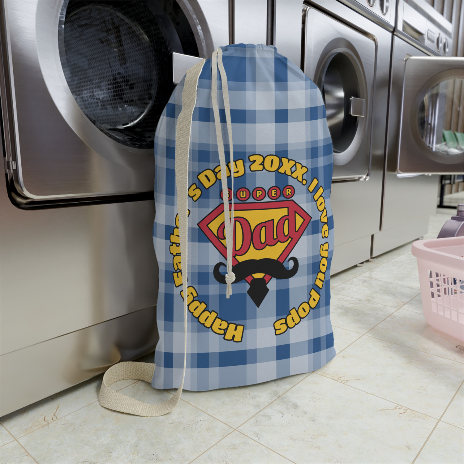 Carry your laundry in style with these customized laundry bags. Available in two sizes, featuring a natural colored woven strap and a cinch cord, these bags hold a lot of clothes or anything else you want to fit in them.