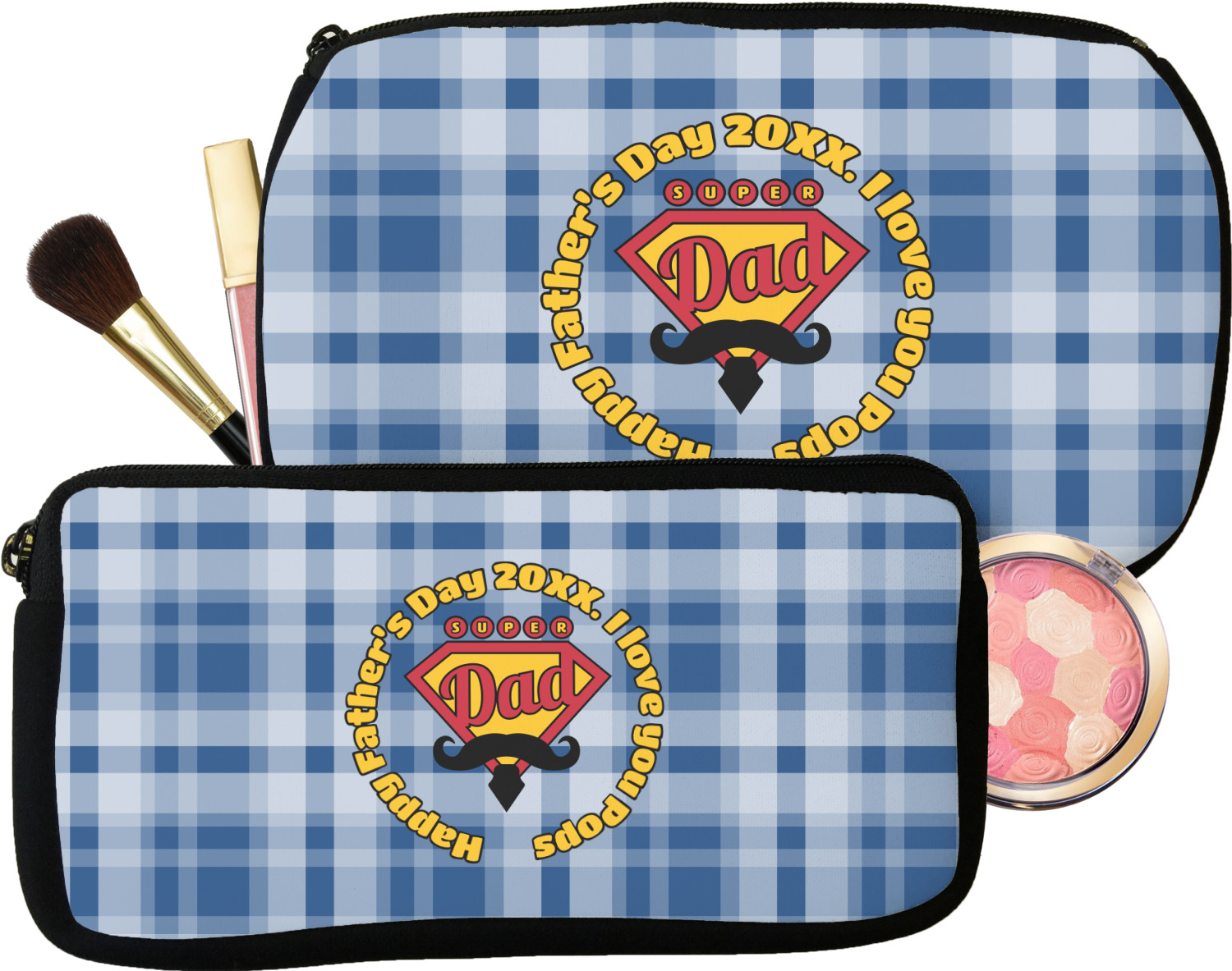 This design is perfect for the Hipster Dad. We chose a blue plaid background with a graphic & text personalization style. We chose the super dad graphic with a mustache & tie in traditional red and yellow. We added "Happy Father's Day 20XX. I Love You Pops" for our text. You can create the perfect father's day gift with this design!