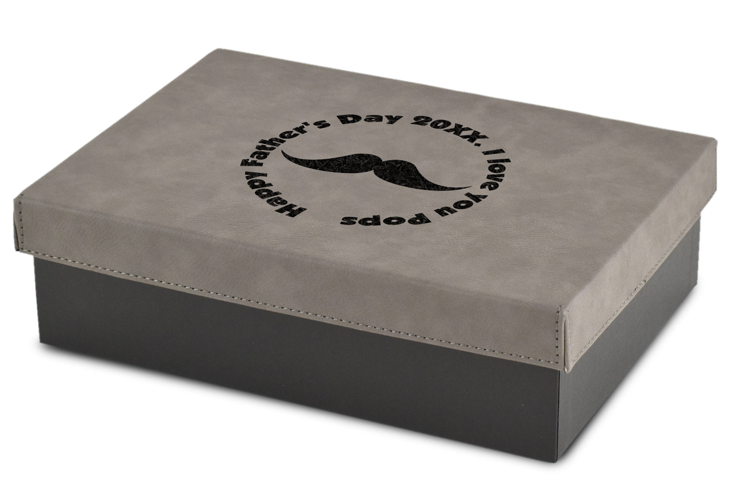 These gift boxes are available in 3 different sizes to accommodate various sized gifts. Available in gray as a neutral color for any occasion as well as to showcase your design boldly. Engraved with a laser this high quality paper board and faux leather gift box is unique and makes any gift stand out.