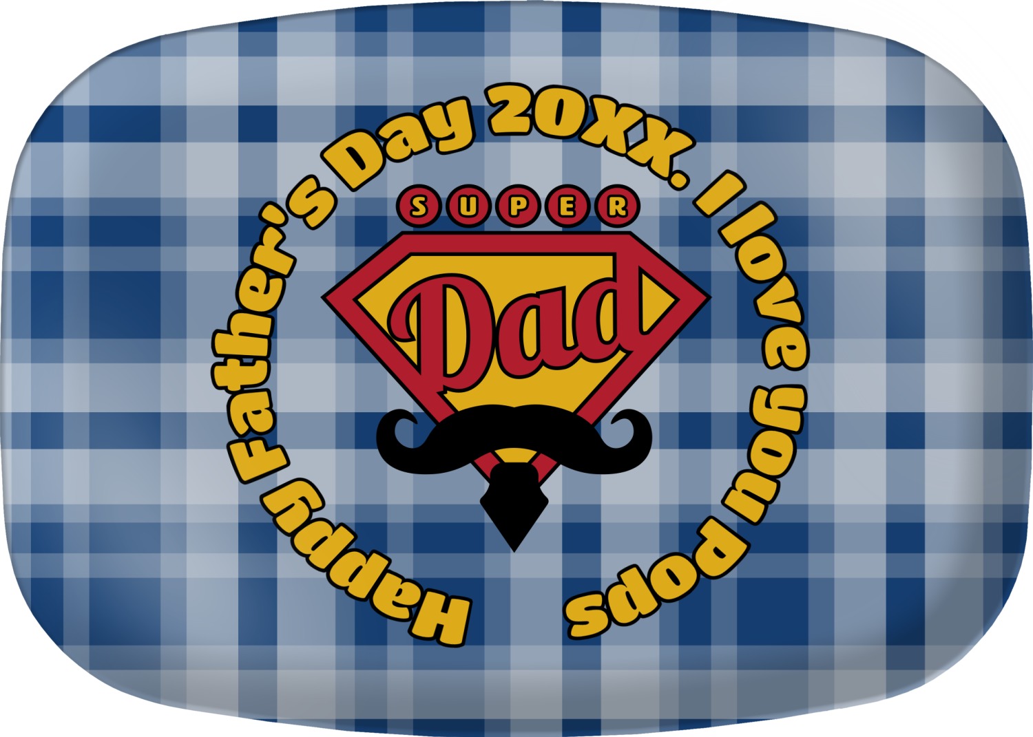 This design is perfect for the Hipster Dad. We chose a blue plaid background with a graphic & text personalization style. We chose the super dad graphic with a mustache & tie in traditional red and yellow. We added "Happy Father's Day 20XX. I Love You Pops" for our text. You can create the perfect father's day gift with this design!
