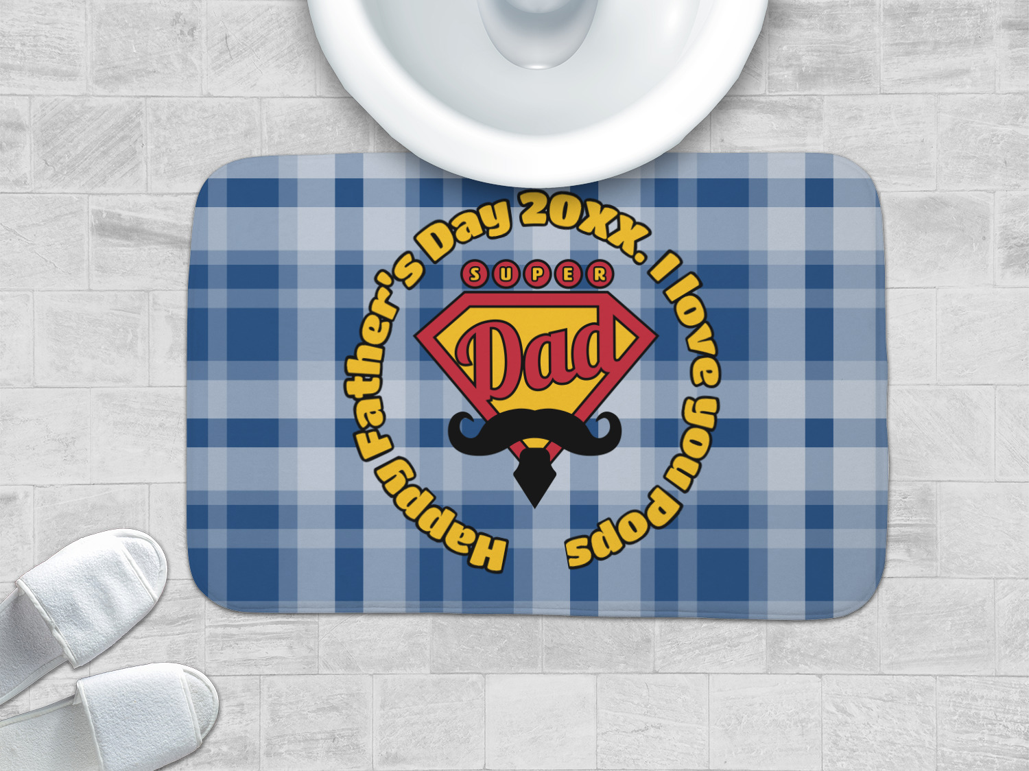 This design is perfect for the Hipster Dad. We chose a blue plaid background with a graphic & text personalization style. We chose the super dad graphic with a mustache & tie in traditional red and yellow. We added "Happy Father's Day 20XX. I Love You Pops" for our text. You can create the perfect father's day gift with this design!