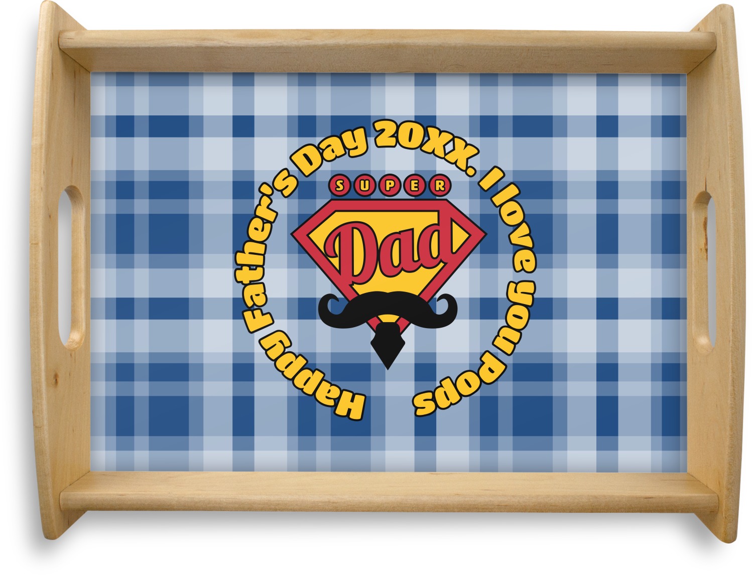 This design is perfect for the Hipster Dad. We chose a blue plaid background with a graphic & text personalization style. We chose the super dad graphic with a mustache & tie in traditional red and yellow. We added "Happy Father's Day 20XX. I Love You Pops" for our text. You can create the perfect father's day gift with this design!