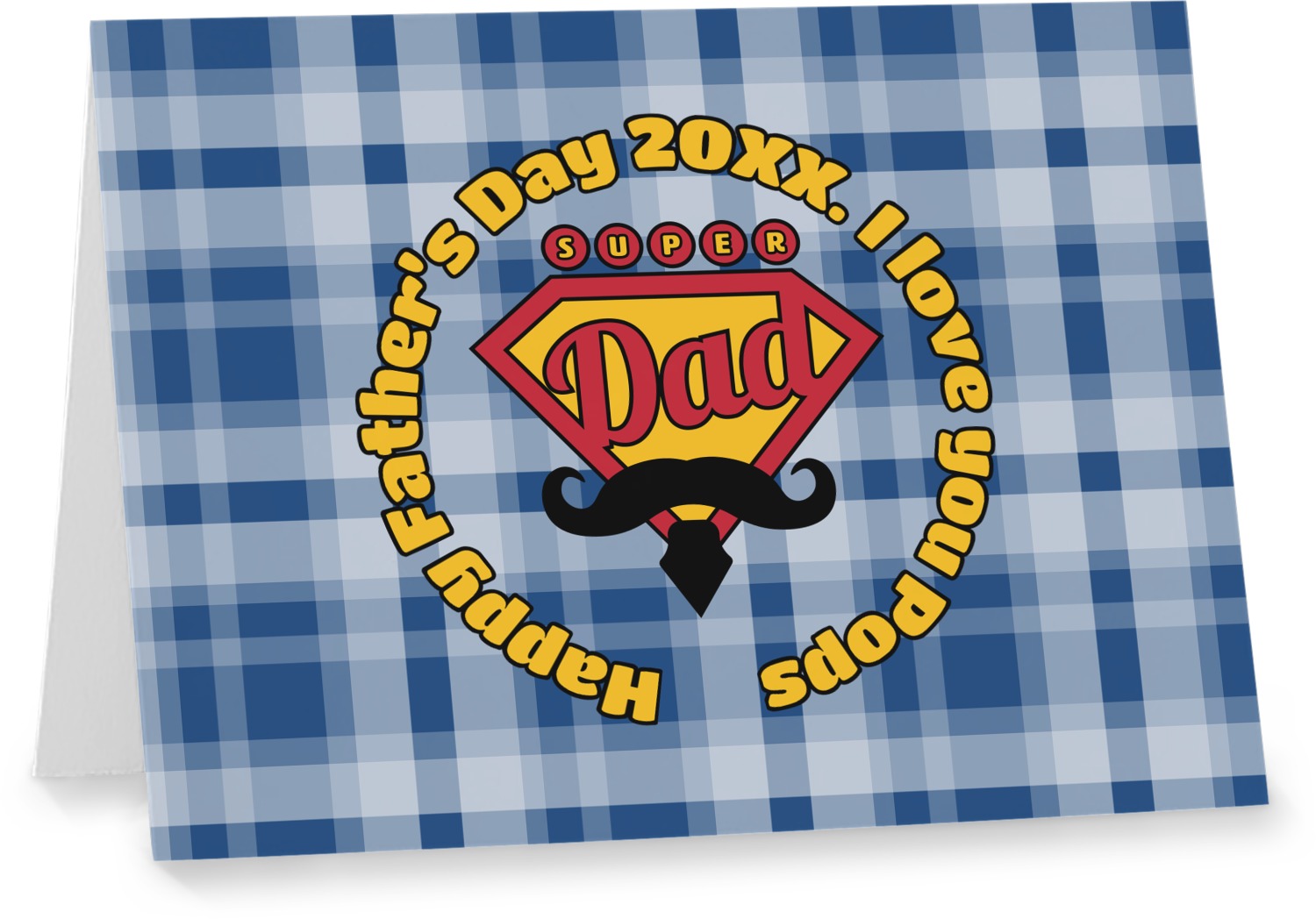 This design is perfect for the Hipster Dad. We chose a blue plaid background with a graphic & text personalization style. We chose the super dad graphic with a mustache & tie in traditional red and yellow. We added "Happy Father's Day 20XX. I Love You Pops" for our text. You can create the perfect father's day gift with this design!