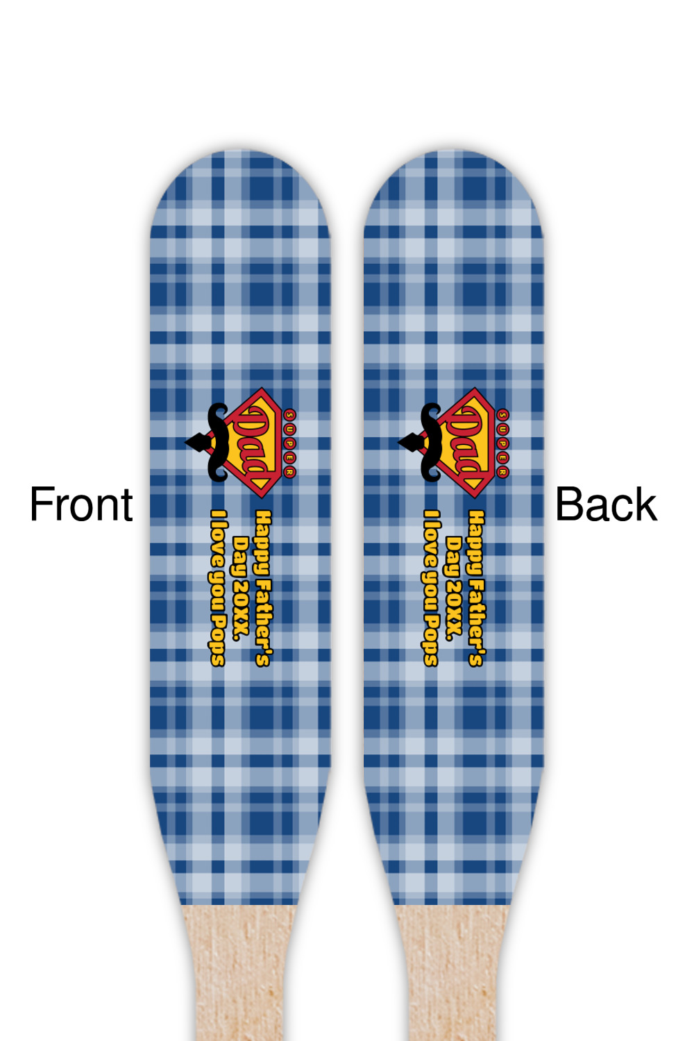 This design is perfect for the Hipster Dad. We chose a blue plaid background with a graphic & text personalization style. We chose the super dad graphic with a mustache & tie in traditional red and yellow. We added "Happy Father's Day 20XX. I Love You Pops" for our text. You can create the perfect father's day gift with this design!
