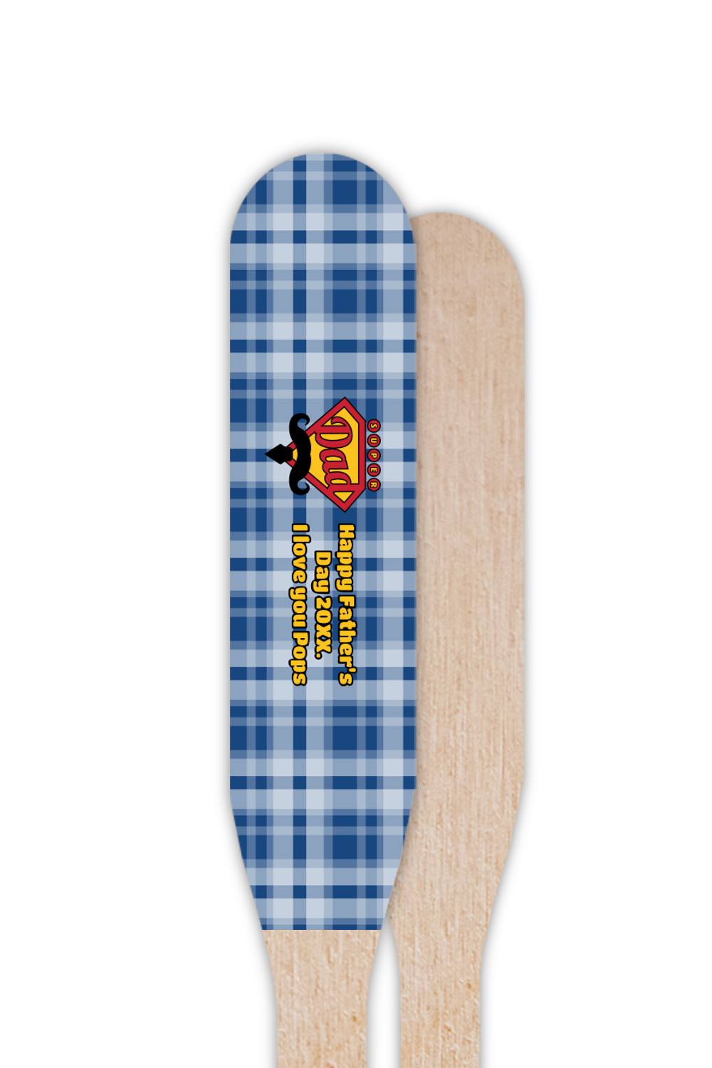 This design is perfect for the Hipster Dad. We chose a blue plaid background with a graphic & text personalization style. We chose the super dad graphic with a mustache & tie in traditional red and yellow. We added "Happy Father's Day 20XX. I Love You Pops" for our text. You can create the perfect father's day gift with this design!