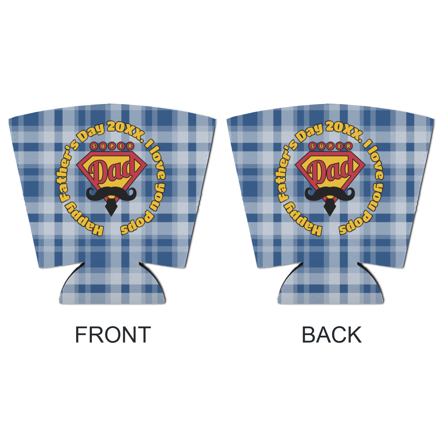 This design is perfect for the Hipster Dad. We chose a blue plaid background with a graphic & text personalization style. We chose the super dad graphic with a mustache & tie in traditional red and yellow. We added "Happy Father's Day 20XX. I Love You Pops" for our text. You can create the perfect father's day gift with this design!