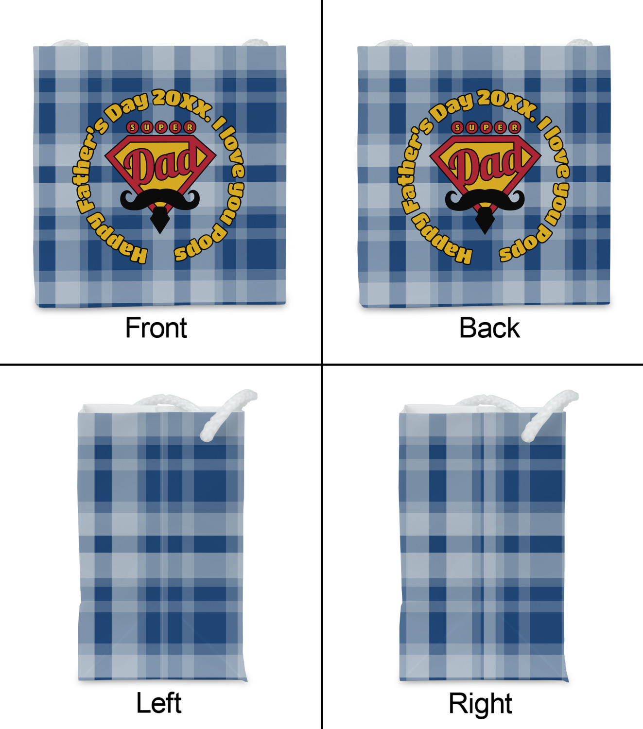 This design is perfect for the Hipster Dad. We chose a blue plaid background with a graphic & text personalization style. We chose the super dad graphic with a mustache & tie in traditional red and yellow. We added "Happy Father's Day 20XX. I Love You Pops" for our text. You can create the perfect father's day gift with this design!