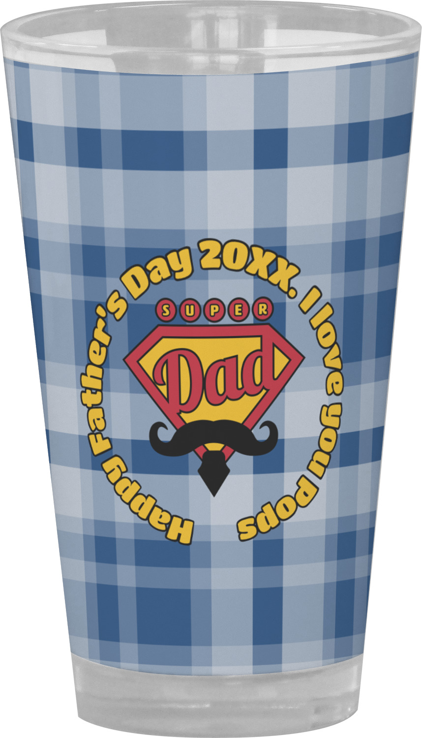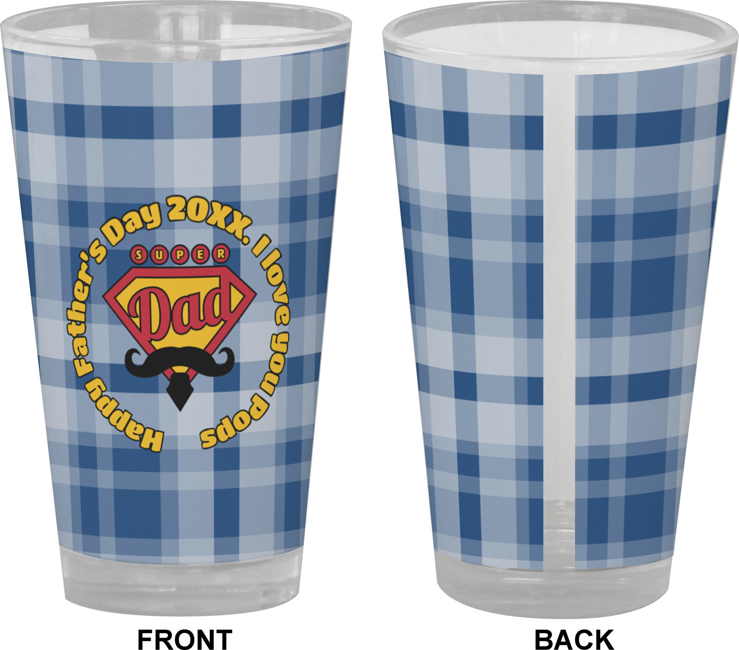 This design is perfect for the Hipster Dad. We chose a blue plaid background with a graphic & text personalization style. We chose the super dad graphic with a mustache & tie in traditional red and yellow. We added "Happy Father's Day 20XX. I Love You Pops" for our text. You can create the perfect father's day gift with this design!