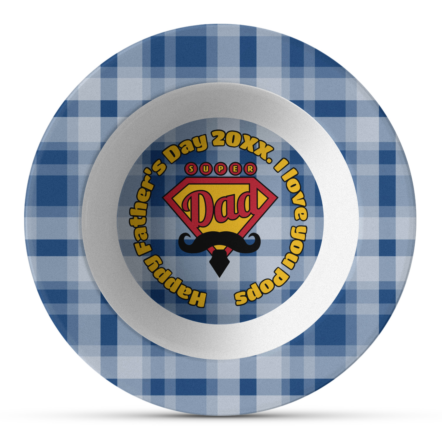 Made from a composite, thermo-set, polymer plastic, these dinner bowls have the versatility, durability, and weight of a melamine bowl without any of the downsides of melamine. Unlike melamine dinnerware, these bowls can withstand high heat. These custom plastic bowls can even handle temperatures of up to 250 degrees Fahrenheit, for up to 60 minutes. The pieces of our plastic dinner set are never made with harmful chemicals, such as BPAs, formaldehyde, DEHPs. We display your personalization on the base of this bowl's interior, while the bowl itself has an 8.75" diameter and is 1.75" tall.
