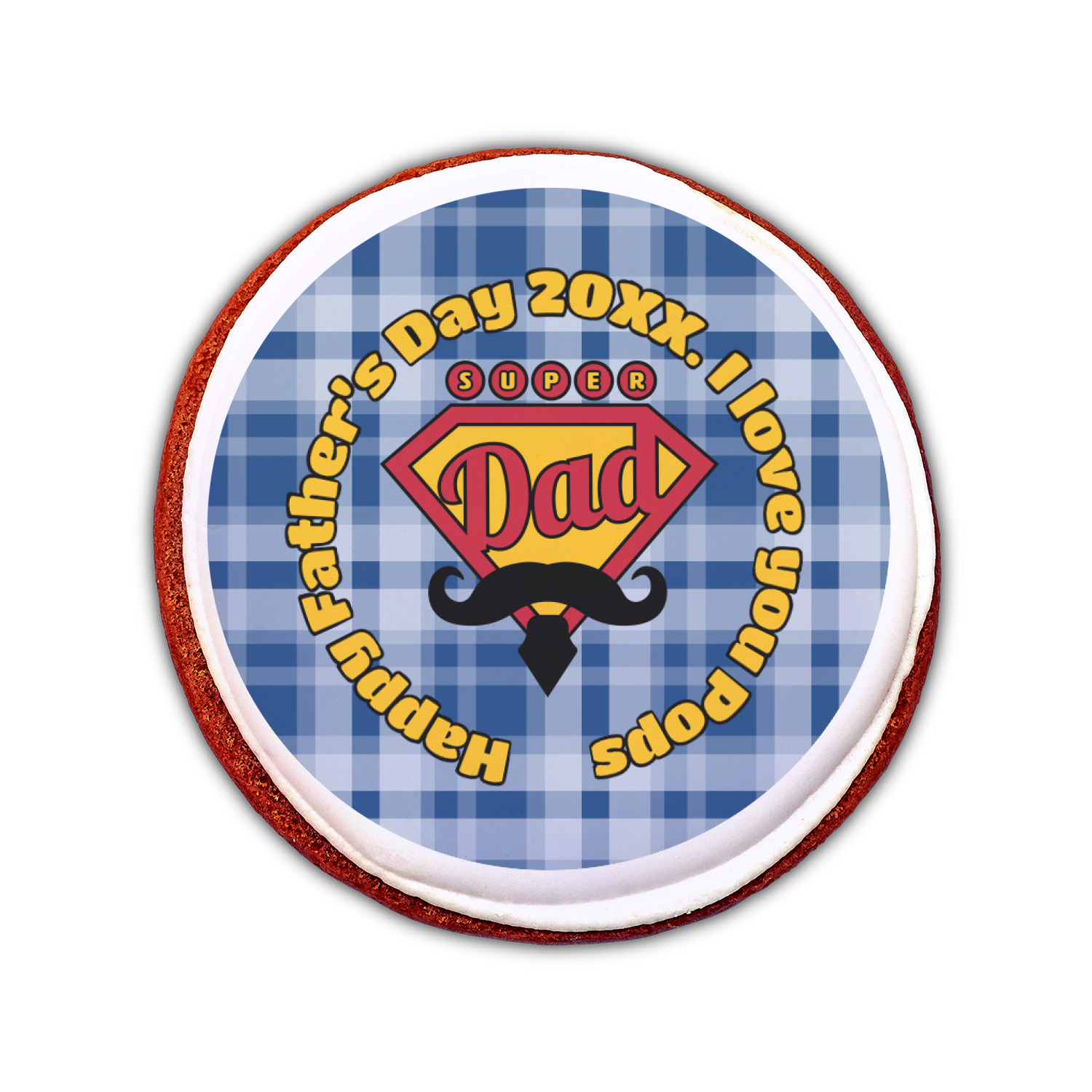 This design is perfect for the Hipster Dad. We chose a blue plaid background with a graphic & text personalization style. We chose the super dad graphic with a mustache & tie in traditional red and yellow. We added "Happy Father's Day 20XX. I Love You Pops" for our text. You can create the perfect father's day gift with this design!