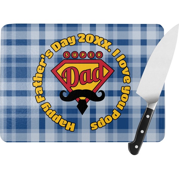 This design is perfect for the Hipster Dad. We chose a blue plaid background with a graphic & text personalization style. We chose the super dad graphic with a mustache & tie in traditional red and yellow. We added "Happy Father's Day 20XX. I Love You Pops" for our text. You can create the perfect father's day gift with this design!