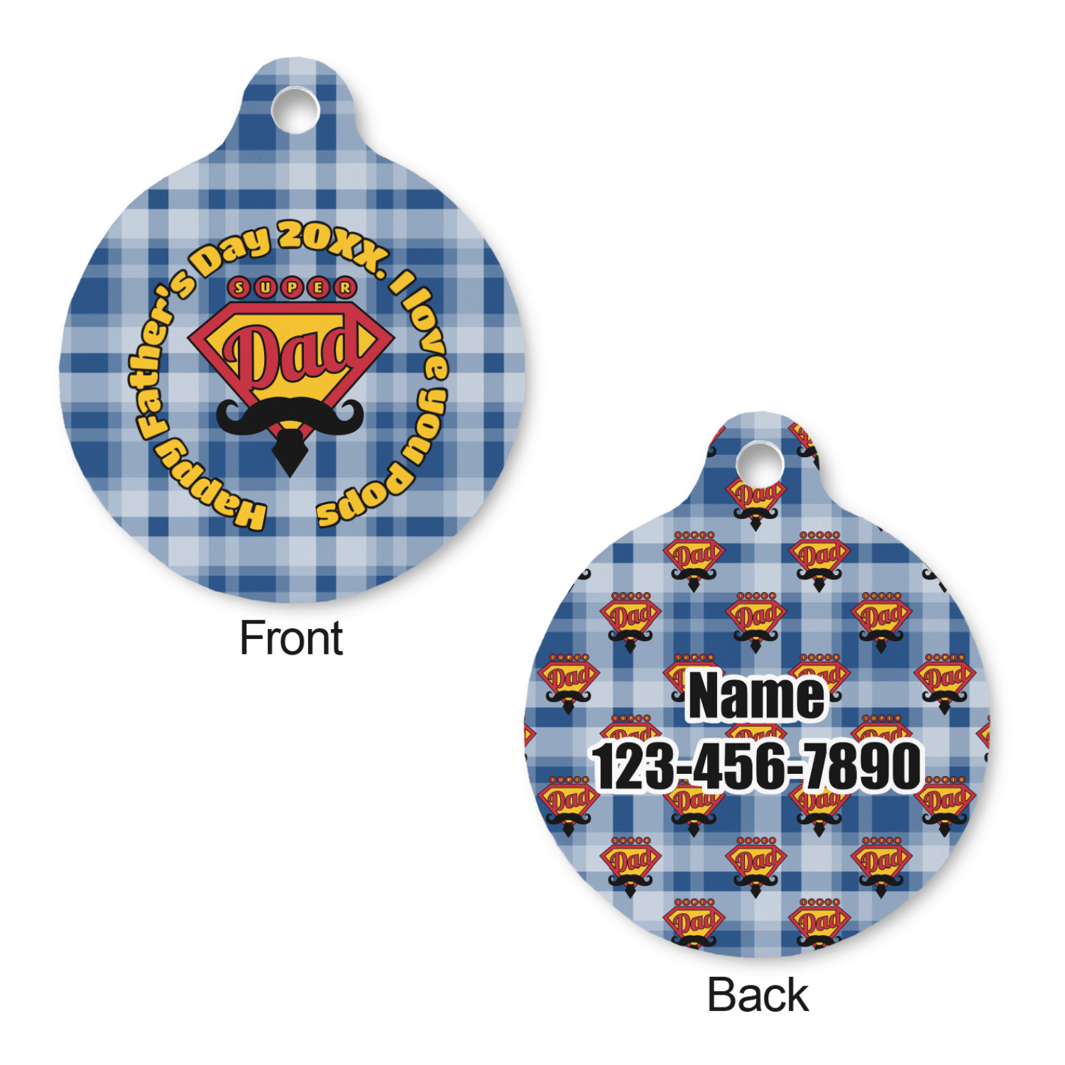 Go ahead; skip the monotony of plain pet ID tags with your very own, customized & personalized, round pet tag! This pet ID tag, fitting for both cats and dogs, will catch the eye of any onlooker (humans, canines, and felines, alike!) and accentuate your pet's individual personality.