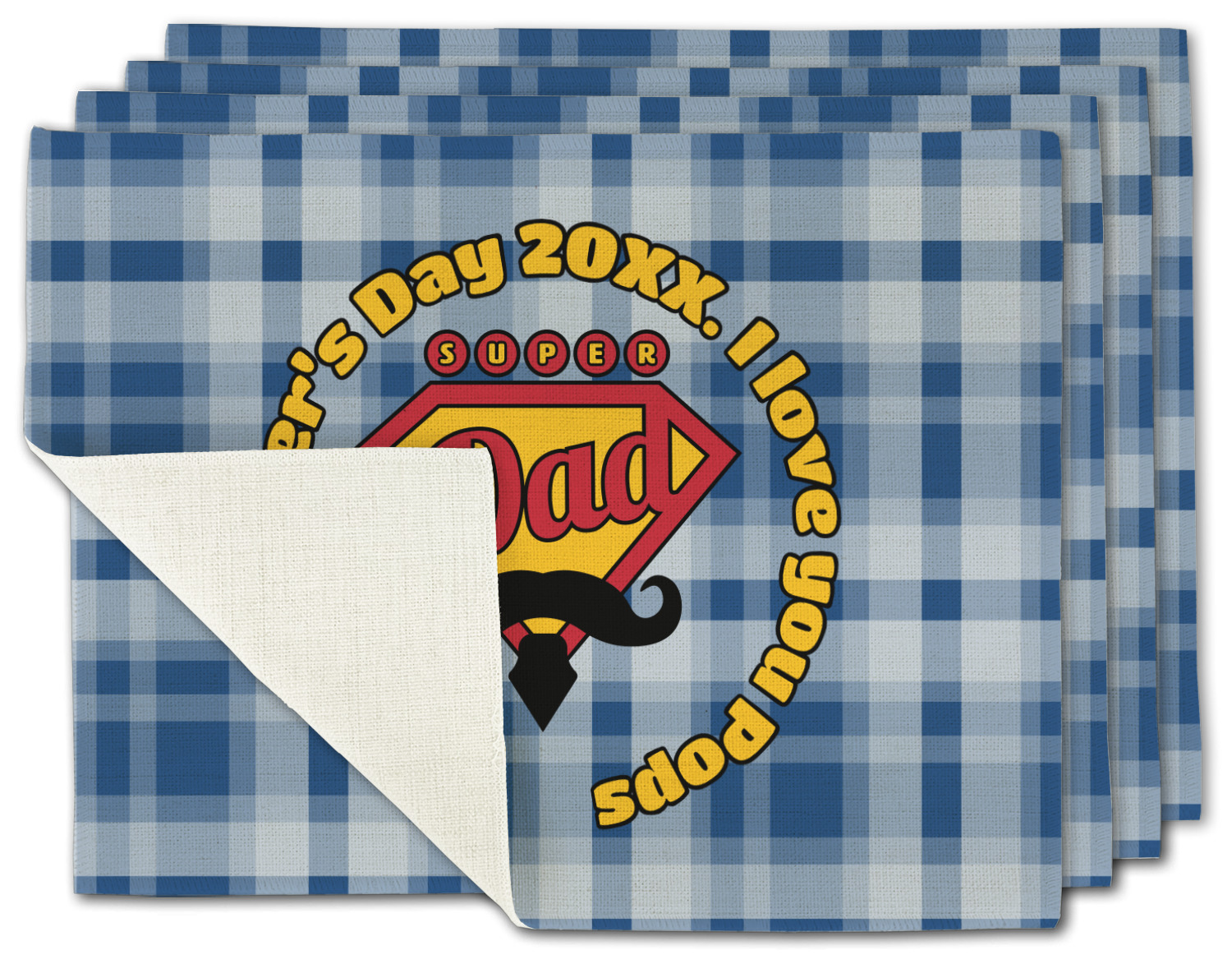 This design is perfect for the Hipster Dad. We chose a blue plaid background with a graphic & text personalization style. We chose the super dad graphic with a mustache & tie in traditional red and yellow. We added "Happy Father's Day 20XX. I Love You Pops" for our text. You can create the perfect father's day gift with this design!