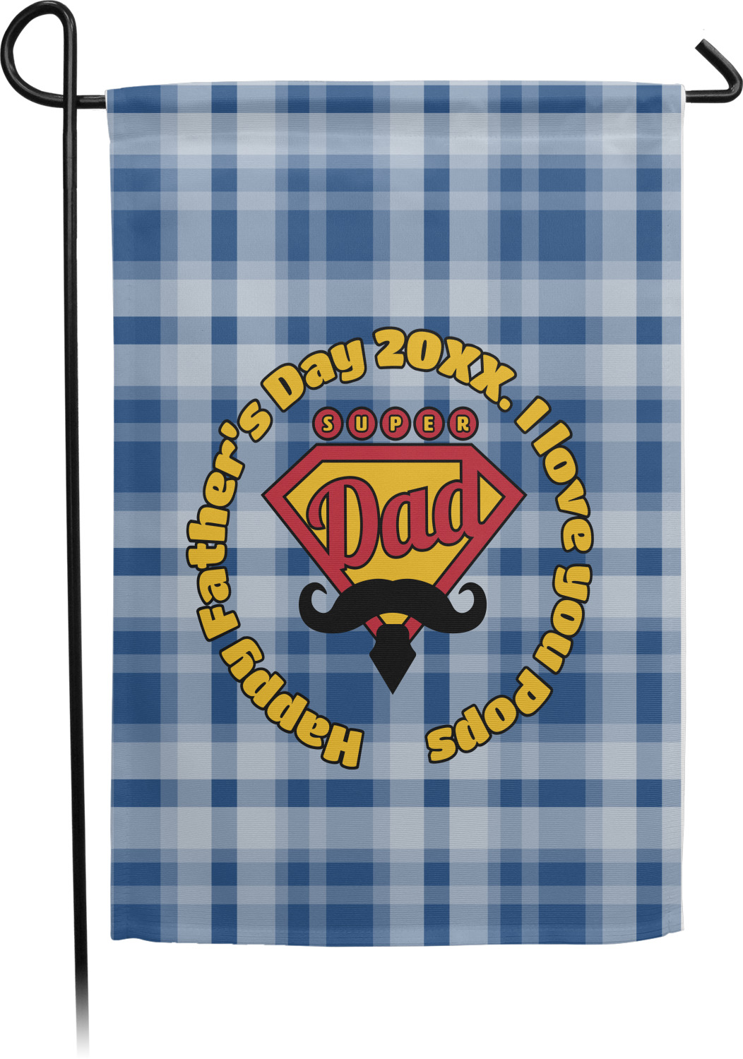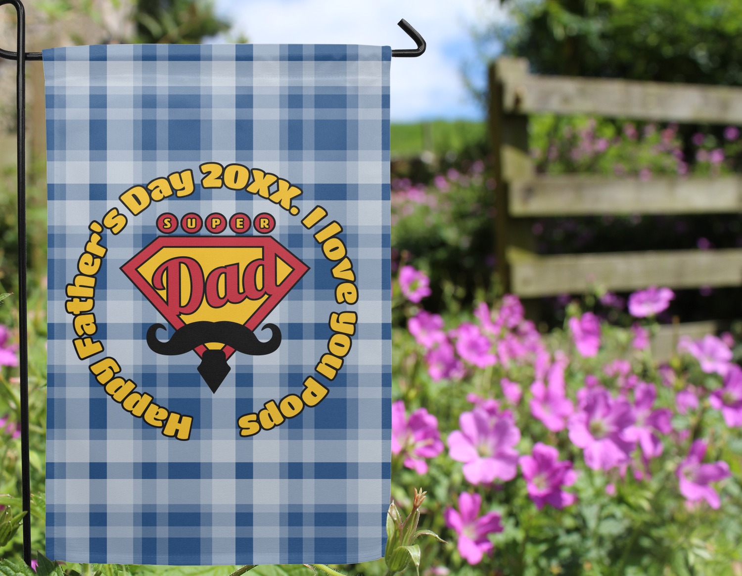 This design is perfect for the Hipster Dad. We chose a blue plaid background with a graphic & text personalization style. We chose the super dad graphic with a mustache & tie in traditional red and yellow. We added "Happy Father's Day 20XX. I Love You Pops" for our text. You can create the perfect father's day gift with this design!