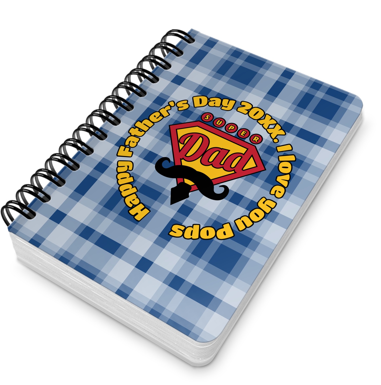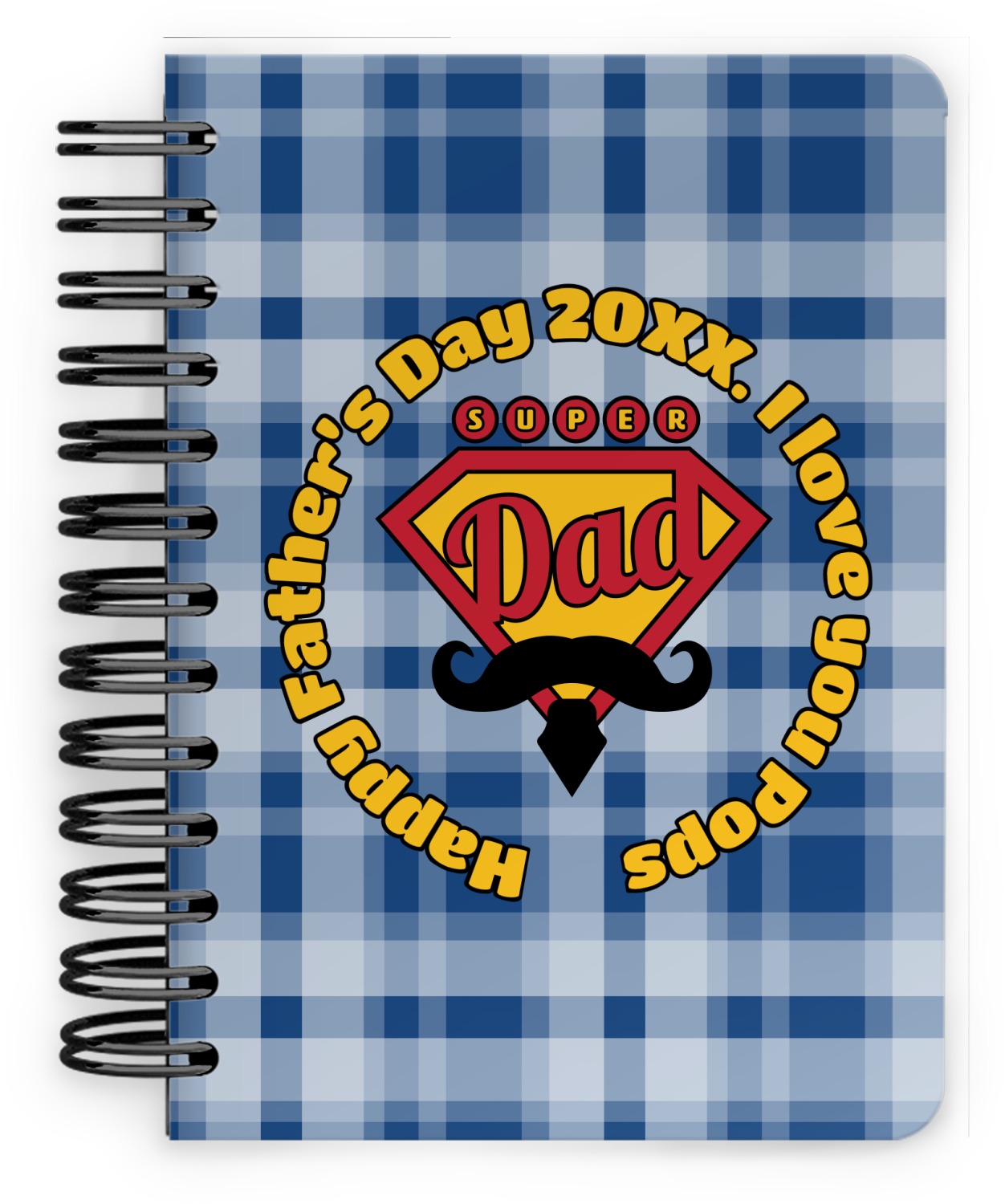 This spiral notebook includes 75 sheets of thick, ruled paper. The front and back of this custom notebook is made of a robust, laminate, plastic covering. We print your personalization on these two panels, underneath a glossy finish, which emphasizes the colors of your design. The two panels and the sheets of paper are held together by a sturdy, black coil. The paper within your bound notebook is perforated for easy, clean tearing.