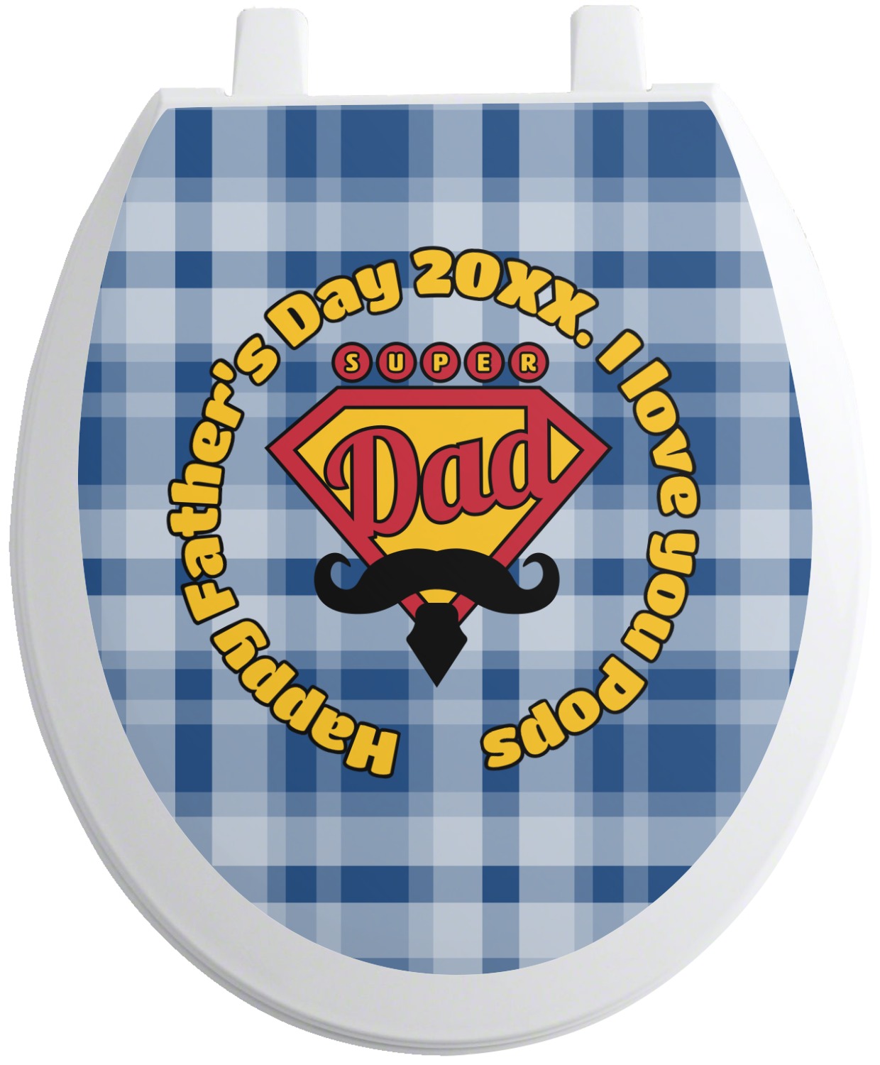 This design is perfect for the Hipster Dad. We chose a blue plaid background with a graphic & text personalization style. We chose the super dad graphic with a mustache & tie in traditional red and yellow. We added "Happy Father's Day 20XX. I Love You Pops" for our text. You can create the perfect father's day gift with this design!