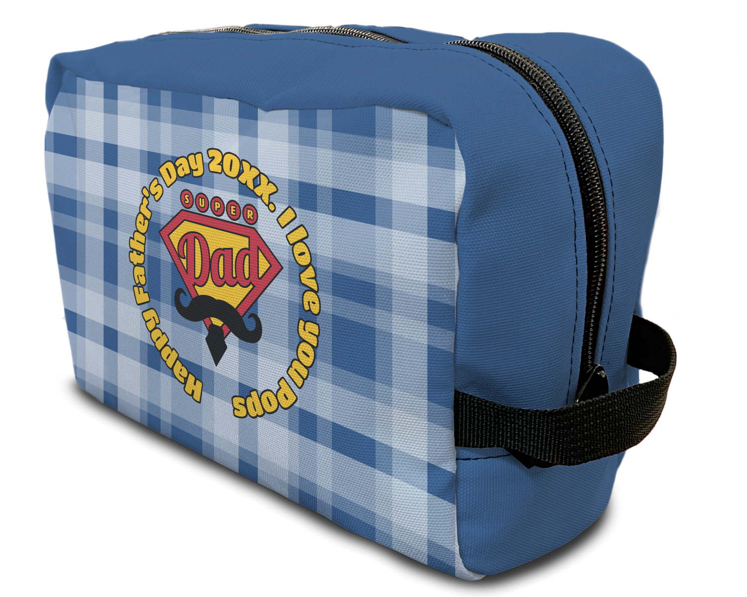This design is perfect for the Hipster Dad. We chose a blue plaid background with a graphic & text personalization style. We chose the super dad graphic with a mustache & tie in traditional red and yellow. We added "Happy Father's Day 20XX. I Love You Pops" for our text. You can create the perfect father's day gift with this design!